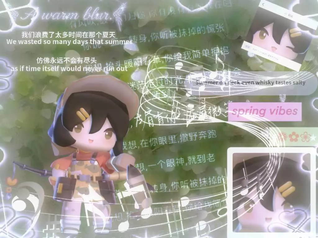 这是一篇迷你世界的创作图文帖,以“古巷逶迤 我们长青”为主题,搭配带有思念风格文案的迷你世界角色美图,还有清新的花卉油画,充满氛围感,作者申请精华与周刊收录。
