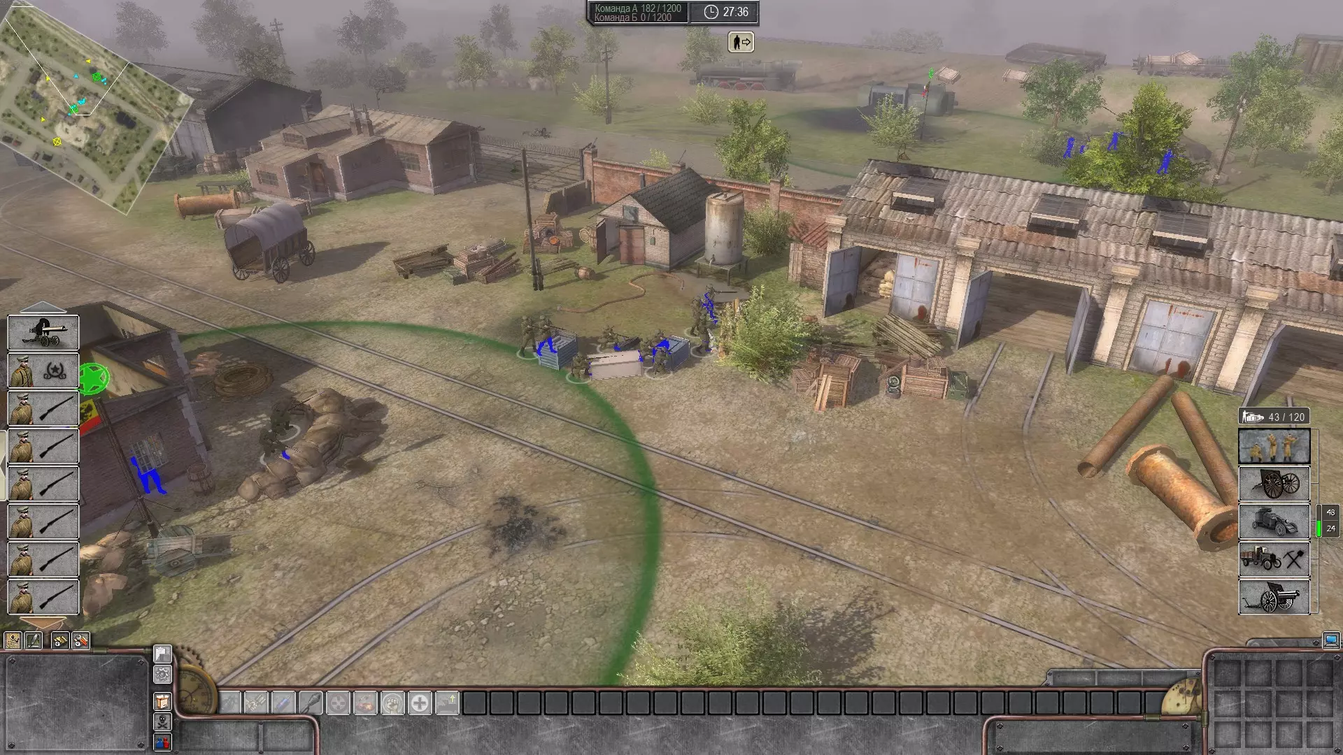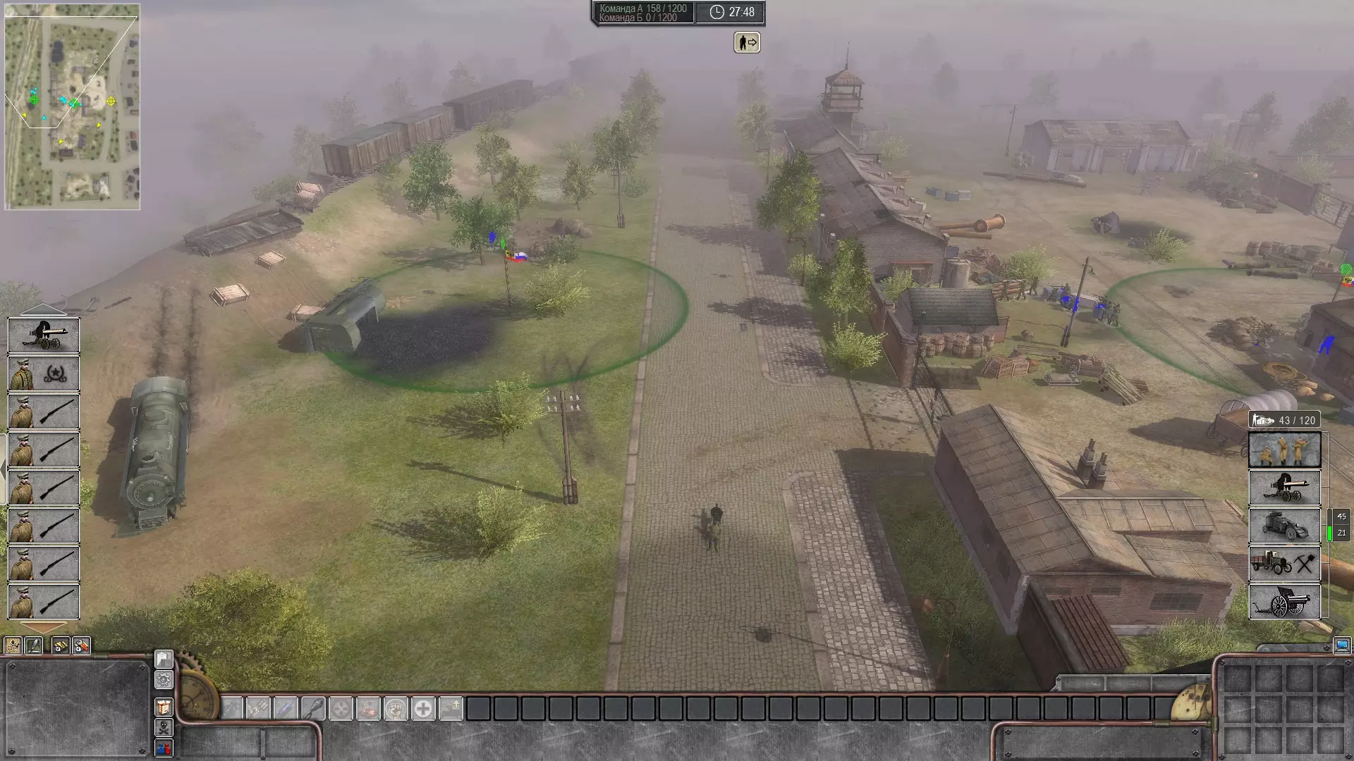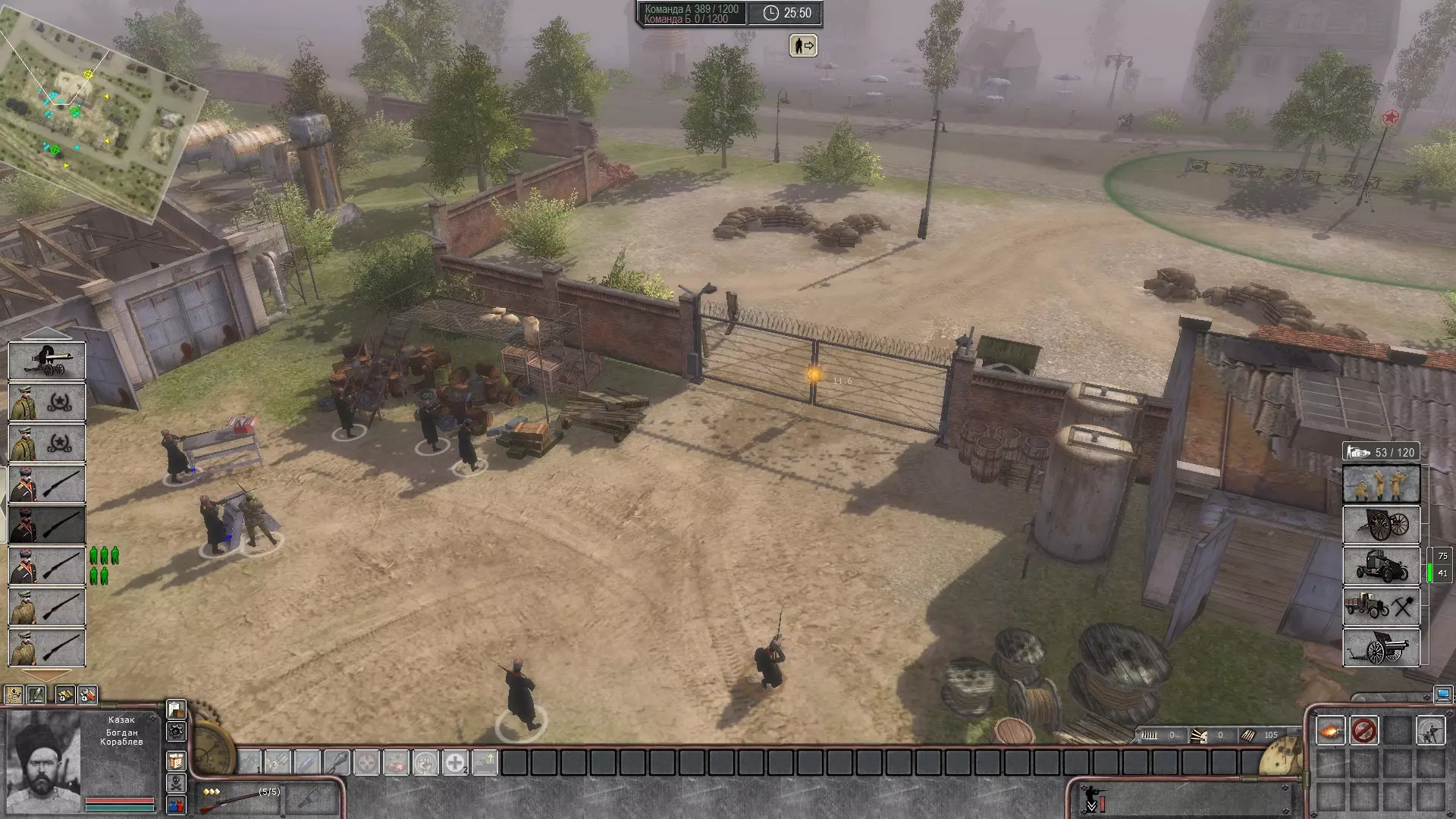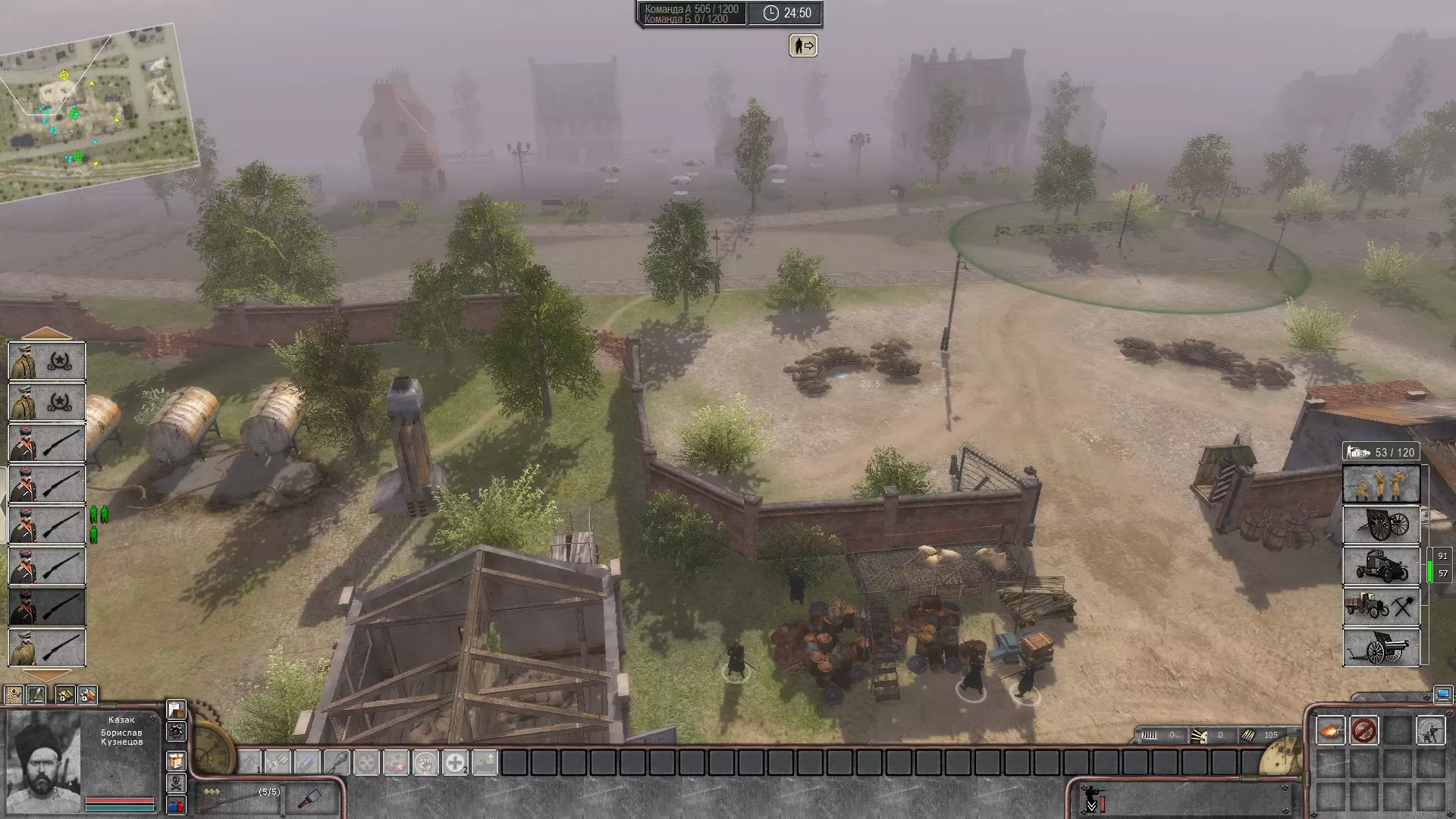 手榴弹使用简要建议 手榴弹最好在直接控制模式下使用。(我个人将短时间直接控制设置在Ctrl键上,以便于按下)首先,选择配备反坦克手榴弹的哥萨克。需要注意的是,手榴弹的投掷距离极远(30米),因此无需过于靠近敌方步兵。在直接控制模式下按下F1键(为方便手指操作,也可将其改到1键),接着按住鼠标左键,等待圆圈中的第一个指针消失后,将手榴弹扔到目标位置(若以最大距离投掷,手榴弹约1秒后爆炸),爆炸范围内的敌方步兵将被消灭。如果我们想向移动的敌军投掷手榴弹,那么应该切换到直接控制模式并开始向敌军部队的侧面奔跑,接着估算距离(大约30米时,等待一根刻度线消失;大约15米时,可以等待两根刻度线消失),然后把手榴弹扔向敌军密集处,这样就能消灭半个部队,剩下的一半会失去意识,而当他们醒来时,会发现自己没有了步枪,只能成为普通的靶子。(开发者请注意:最好将枪支拾取设置为自动,失去意识后没人有时间去找枪)。手榴弹最好从掩体(墙壁、桶、长凳等,什么都可以,关键是让步兵在投掷手榴弹前保住性命)投掷。向坦克投掷手榴弹也是如此,但在直接模式下投掷反坦克手榴弹时,应在投掷计时器上的第一根指针消失之前投掷。目前就这些内容了,如果玩家们喜欢这些简短的指南,我会撰写更详细、更深入的内容。