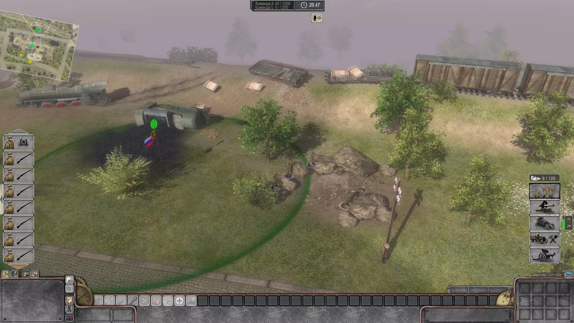 本指南将介绍《帝国之战:1914-1918》中俄罗斯帝国的游戏基础,其实这些信息也适用于其他国家。以下是步兵闪电战战术。 初始单位简要指南 单位建造顺序: 1. 步枪兵小队 2. 步枪兵小队 3. 机枪(部署在己方旗帜处)。顺便说一下,俄罗斯帝国的机枪是最好的,因为其俯卧射击的士兵有金属板提供良好掩护。 4.哥萨克部队(手榴弹在战斗初期阶段的转折中发挥关键作用) 更具体的操作: 将第一个单位的分遣队派往己方旗帜处,其余部队派往中心区域开始占领。将第二支部队全部派往中心区域以压制敌方步兵(不应将整支部队派往旗帜处,最好占据旗帜附近有掩护的位置) 将机枪小队部署到己方旗帜处,用于压制敌方步兵,同时在敌方试图攻击己方旗帜时起到防御作用。哥萨克部队则用于利用手榴弹快速消灭敌方步兵,并打破战斗初期的僵局。(关于手榴弹的使用将在单独章节中详细说明)记住,永远不要停留在旗帜处,成功击退敌人后,要向接下来的防御工事推进,占领它们并扩大主动权。如果大家对更详细地了解各种战术和游戏特点感兴趣,我会撰写更详细的指南。