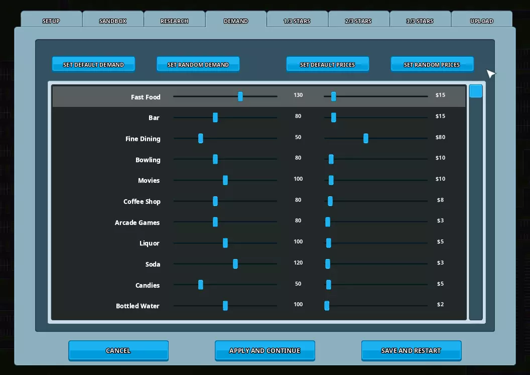 需求 在此标签页中,你可以为你的场景设置每种产品的需求和价格。