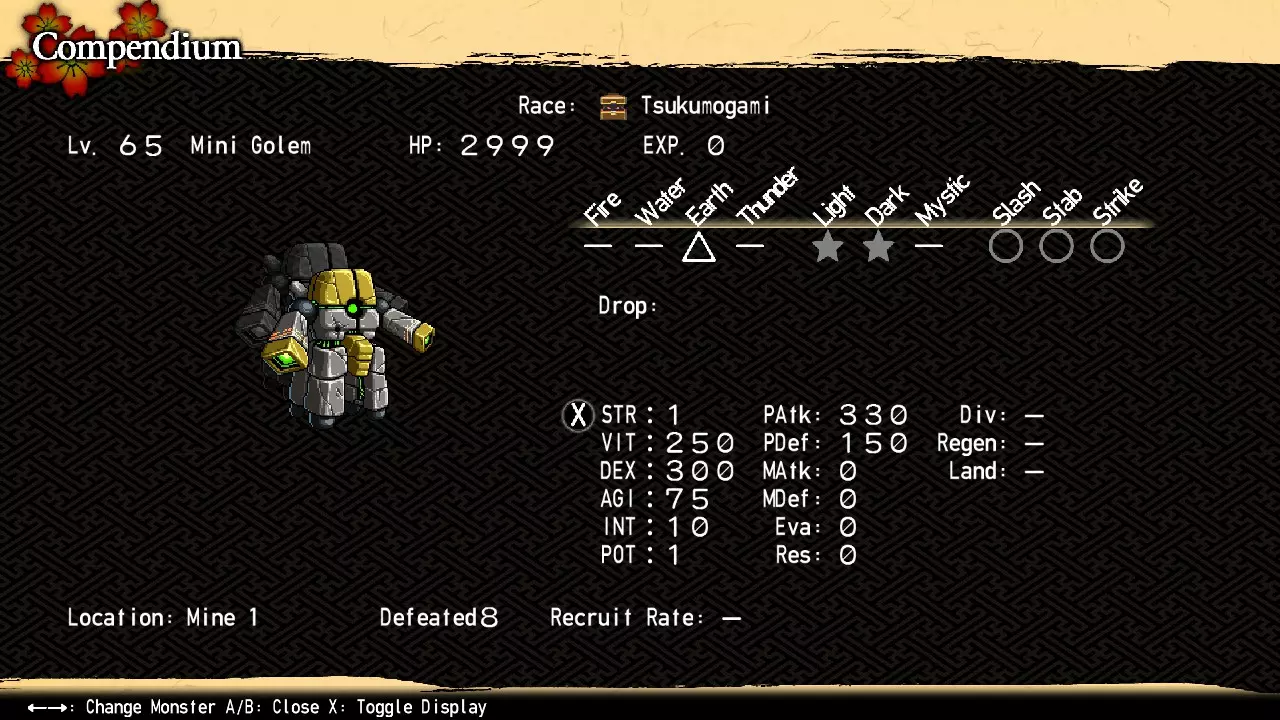 她不再戏耍。她将能量之手替换为层云之刃,将能量乱流替换为毁灭新星,并且获得了驱散和聚力的能力。聚力之后,下回合必定会衔接蓄力【黄昏强袭】。黄昏强袭是一种强力的大范围物理打击攻击,有50%的几率造成击倒效果,并且拥有惊人的300施法速度。如果不提前使用先发制人(绫12级、无畏舰30级、音羽1级、F.芳乃1级)或施放闪电速度(希尔芙1级),你将没有机会进行防御。尽量避免队伍成员过于密集的阵型,以减少伤害。总体而言,由于她的攻击变得更加危险,你不能再采取防御姿态了。转换战术,全力猛攻她。幸运的是,她只有驱散技能而非漩涡,所以你应该能在所有人的增益效果被驱散前结束战斗。 如果你已经打到这里,就绝对能完成这场战斗。在遇到超级Boss之前,没有比这更难的挑战了。 额外章节1 - 第四阶层 第三部分 【敌人】石魔像与4个小型石魔像 【地点】矿场1区7号区域