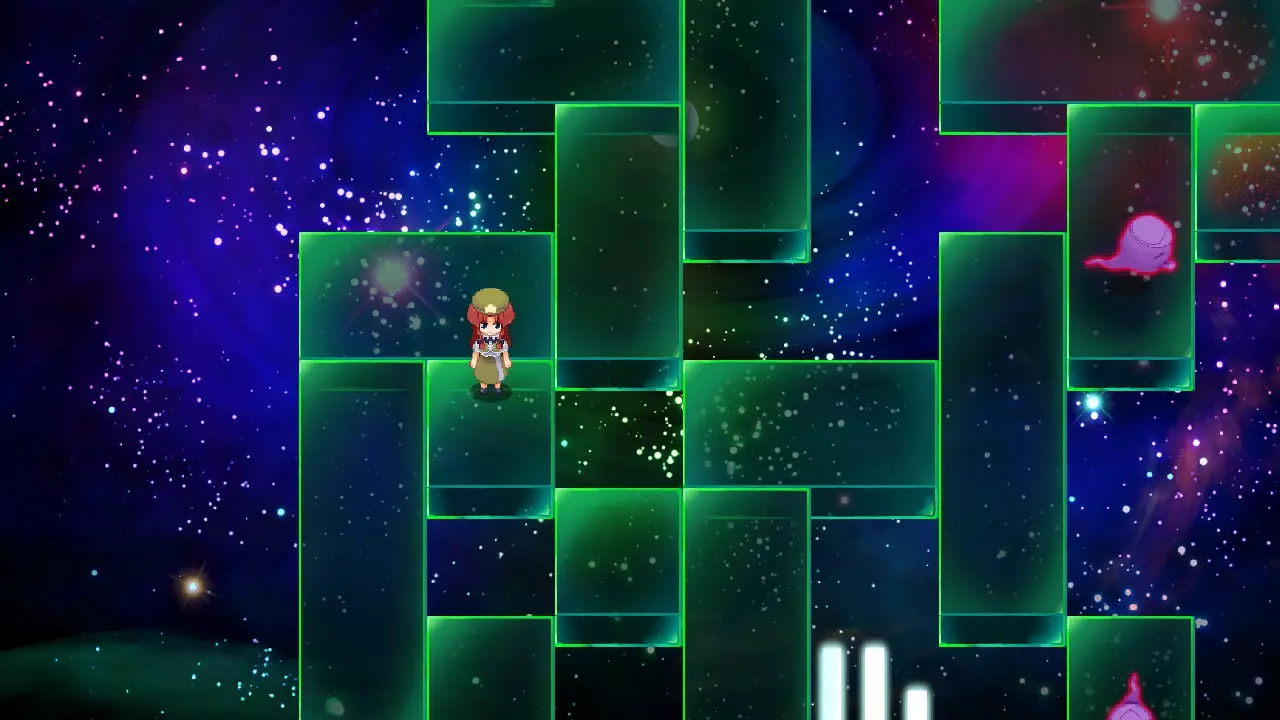 这两个敌人单独来看难度不算太高,说实话,它们的组合效果并非简单的一加一等于二。它们每回合只能行动一次,其中由岐可以使用暗之电击、暗之吐息、火焰打击、群体驱散、咆哮、即死和集中精神,而舞则可以使用酸雨风暴、乱射、武器祝福、冰冻暴雪、辐射迷雾和集中精神。集中精神之后必定会接各自的技能,这些技能与它们单独战斗时相比没有变化。当你击败其中一个后,另一个会强化,获得再生能力以及一些额外的、在单独战斗中使用过的技能,但它们仍需要通过集中精神来预示技能释放(这一点与单独战斗时不同),并且每回合依然只有一次行动机会。最重要的是,确保提升你的【抗性】以抵御这场战斗中各种异常状态的攻击。接下来,你可以通过两种方式应对:一是抵御火焰和水系伤害,同时将光属性领域提升至最高,然后保持相对均衡的伤害输出,防止它们长时间强化自身;二是抵御暗属性以及火焰或水系中的一种伤害,然后集中攻击你未防御其属性的那位魔法师。即便处于强化状态,这两位敌人也几乎构不成威胁,所以无论你选择哪种策略,这场战斗都不会让你困扰太久。 梦子 位置:内部黑圣所区域7