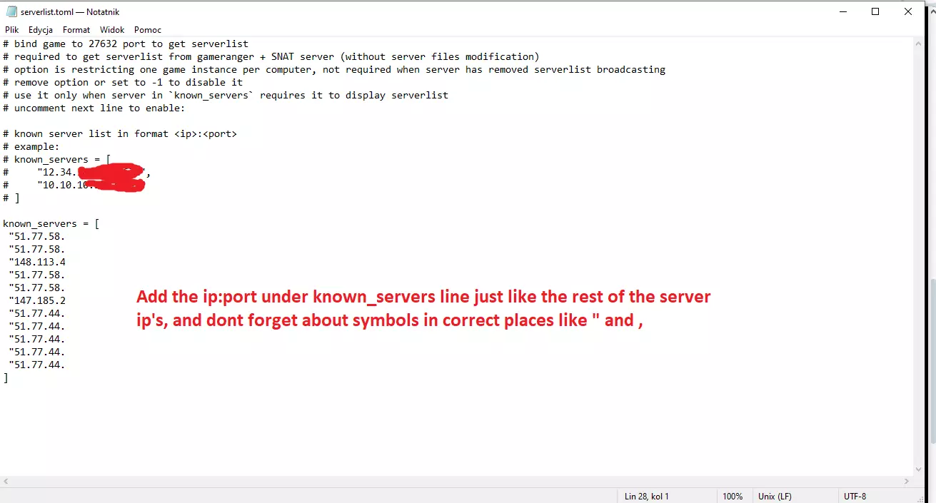 提取DedicatedServerMod,并将engine_x86_ds.dll复制到你的专用服务器安装文件夹中,替换旧的engine_x86_ds.dll文件【此操作是为了让专用服务器能够显示在局域网服务器列表中】。将来自playit.gg的服务器IP和端口添加到serverlist.toml文件的已知服务器行下。