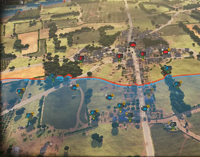 感受《钢铁之师:诺曼底44》的核心概念——动态变化的战线指示器【动态前线】吧。