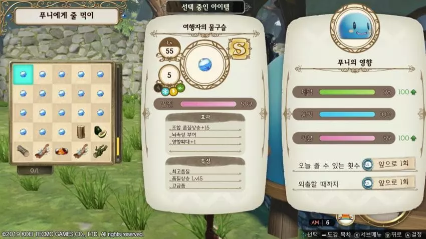 这是一份仅使用复制釜制作出能将体力、光泽、心情提升至100的食物的方法指南。 概述 给噗尼喂食6次后它才会外出, 由于每天最多能喂食3次,因此总共需要两天时间。 若在6次喂食中,都按照旅行者的水珠2份比水晶元素1份的比例进行投喂, 就能让体力、光泽、心情全部达到100。 (因为是2:1的比例,所以6次喂食总共需要旅行者的水珠4份和水晶元素2份) 1. 水晶元素(体力/光泽/心情分别提升18、30、6)