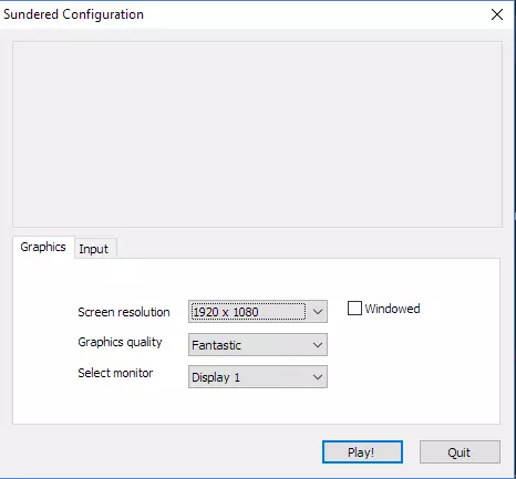 现在,在你的Steam库中,按住Alt键启动《 Sundered》。片刻后,会打开《 Sundered》的配置窗口(它可能会缩小到任务栏中,但这种情况下,你会看到任务栏中有一个闪烁的橙色图标,只需点击它即可显示窗口)。