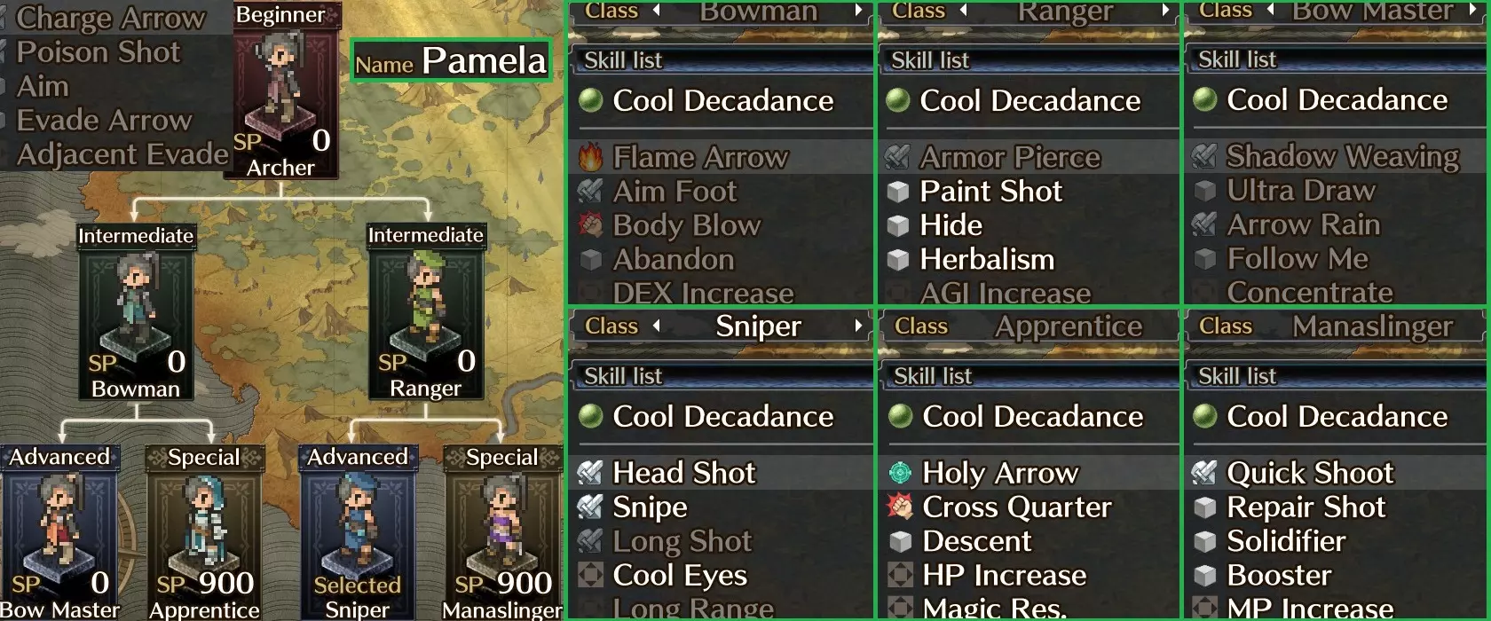 在骑士路线初期,我真的很喜欢帕梅拉,她凭借出色的范围伤害和强大的回避被动,在游戏中期的大部分时间里都是队伍的核心。可惜到了后期,她的表现有所下滑,转而成为了一名辅助角色(不过是很优秀的辅助)。 值得注意的技能: - 颜料射击:由于敌人属性(回避)较高,在较难的关卡和模式中很有用。 - 箭雨:出色的范围技能,可以附加神圣属性以造成更高伤害。 - 极限蓄力:为下一次攻击蓄力,造成高额伤害。 - 快速射击:优秀的终结技,可额外获得一次行动机会。 - 精准狙击:类似于“精准打击”,对回避率高的棘手敌人效果显著。 - 远程射击:距离越远,伤害越高。 - 神圣箭:在神圣弱点更为突出的中后期游戏中,有着不错的适用场景。 我真不敢相信我的妹妹费伊竟然会地震技能!