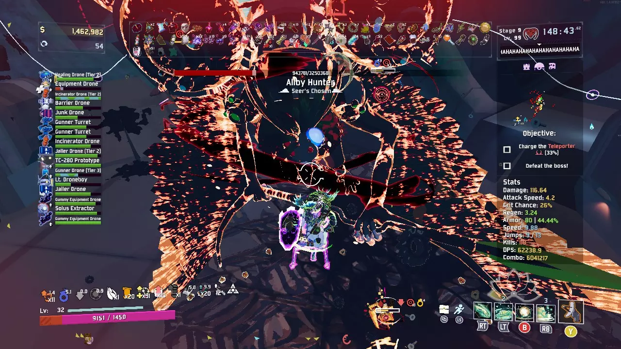 我最近制作了一个模组,旨在帮助解决游戏后期的卡顿问题,并显著提升游戏性能。如果你喜欢进行长时间循环游玩,或者使用低配电脑,本指南将介绍能大幅提升帧率的确切设置。 由于这个模组还比较新,请大家在自己的设备上帮忙测试,如果遇到任何bug或发现更好的配置设置,欢迎反馈。希望它能改善你的游戏体验! 背景介绍 我使用搭载英特尔Iris Xe集成显卡和8GB内存的电脑玩《雨中冒险2》(我很清楚这是一台低配设备,但我认为它完全有能力流畅运行这款游戏)。每当游戏进入后期循环阶段,帧率就会突然下降到8-15 FPS,变得无法正常游玩。我的CPU和GPU使用率都低于100%。我的笔记本电脑没有达到性能上限,但游戏仍然卡顿,这可能是因为游戏依赖单核性能。于是我去社区论坛查找原因,结果发现一些拥有最新一代CPU和高性能RTX 4080显卡的玩家也在抱怨完全相同的后期游戏卡顿问题!与此同时,YouTube和谷歌论坛上的每一个“帧率指南”都只是告诉你“降低图形设置”或“关闭阴影”。大家早就知道这些方法了,但它们从来没有解决过循环卡顿的问题。更糟糕的是,社区中那些知名的帧率优化模组(比如Performance Uplifter)已经过时且完全被弃用。出于对解决后期游戏突然掉帧问题的极度失望,我决定自己制作这个模组。游戏卡顿原因 以下是我发现的会严重影响帧率的问题: 注意:以下所有设置均为可选,可在游戏中自行开关。 问题1:存活怪物过多 当同时生成40只以上怪物时,游戏需要计算每只怪物的移动路径,这会导致帧率骤降。 解决方法:该模组会让远离玩家的敌人进入休眠状态并停止移动。同时,它还设有最大怪物数量限制,当游戏生成过多怪物时,会自动删除屏幕外最弱小、距离最远的怪物。 问题2:动画卡顿 游戏会为数百米外或山脉后方的怪物设置骨骼和腿部动画,这会浪费大量资源。修复:距离动画冻结问题会完全暂停远处敌人的行走动画。 问题3:无尽物品连锁反应 当你的神级构筑同时触发【尤克里里】、【ATG导弹发射器】和【 meat hooks】时,游戏会瞬间产生数千次爆炸并导致严重卡顿。 修复:该模组将屏幕上允许的最大视觉效果数量硬限制在安全水平。 问题4:尸体问题 击杀大量敌人时会突然出现延迟峰值,因为游戏会持续计算其尸体的物理效果和落地过程。 修复:即时尸体清除器会在敌人死亡瞬间立即删除尸体,完全移除重力计算。问题5:战利品弹跳过载 开启宝箱或击败 Boss 时会掉落大量物品和金币,它们在复杂重力物理作用下四处弹跳。 修复:即时战利品掉落功能会让所有物品和金币立即直接落至地面。 问题6:游戏运行速度过快 默认情况下,游戏每秒计算 60 次物理效果。在疯狂战斗循环中,你的 CPU 可能无法跟上这个速度。 修复:你可以使用降低物理刷新率功能,将物理检查降至每秒 30 次。你的移动速度和游戏速度保持完全不变,但 CPU 的工作量会减少一半! 问题7:屏幕杂乱 大量伤害数值以文本形式弹出,再加上众多敌人的血条,会让你视线受阻并降低帧率。修复:该模组提供一键切换功能,可禁用所有浮动文本和生命值条界面。 问题8:地图几何与阴影加载过重 游戏会强制GPU渲染3D岩石、树木和精细的太阳阴影,占用内存,即便屏幕上一片混乱,你甚至都看不到地面。 修复:该模组包含强效地图剥离功能,可卸载远处的树木、岩石、厚重的阳光阴影、无用的地形贴花,甚至调整绘制距离设置,大幅减少GPU绘制调用和内存占用。 安装方法 安装此模组最简单安全的方式是使用社区模组管理器。 1.下载并安装Thunderstore Mod Manager。 2.打开管理器,选择《雨中冒险2》作为你的游戏,并创建个人资料。