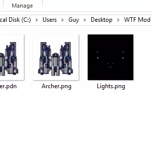 我还新建了一个灯光图层副本,并使用“色相/饱和度”将灯光从蓝色改为红色。然后我将精灵的新副本和灯光图层的新副本另存为“PirateArcher”和“PirateLights”。这样我们就完成了这部分工作。接下来该使用ModTool了。 ModTool ModTool非常简单,而且效果很好。我在使用它时几乎没有遇到什么问题。