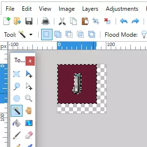 一旦你将图像调整到喜欢的方向,就把它粘贴到paint.net中。在那里选择魔棒工具,选中红色区域,然后使用ctrl+x删除红色部分。别忘了降低容差值,50%太高了,会切掉精灵图的部分。我发现20%对我做的大多数操作来说效果都很好。 顺便说一下,从mspaint粘贴新部件时要注意,确保你已经创建了一个新图层,并且将内容粘贴到这个新图层中。这是我仍然经常犯的错误。幸运的是,paint.net最好的功能之一就是近乎无限的撤销次数。