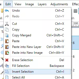 这张图片的效果已经相当不错了,但目前看起来还是比较扁平。我们需要增加一些深度,否则当把它导入到模组工具和游戏中时,看起来也会非常扁平。首先,我使用魔棒工具选择空白区域,然后在“编辑”下拉菜单中选择“反选”。这样做是为了防止我所做的任何修改溢出到精灵之外。如果精灵内部存在间隙,效果溢出会非常令人讨厌。
