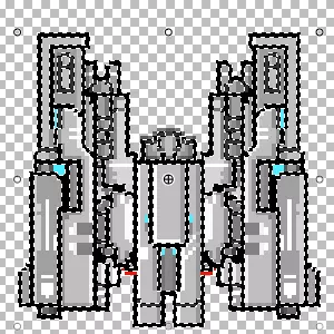 好的。现在确保你的灯光图层在最顶层。然后在它下方新建一个图层,并用油漆桶工具将其填充为黑色。之后你要将这个保存为一个单独的文件。我通常就把它命名为“lights.png”。接着你按照相同的步骤选择配置(32位)并合并图像。完成这些后,你就准备好了。除非你想制作变体。事实上,现在是决定是否制作变体的绝佳时机。这会让你在模组工具中操作起来更轻松。或许可以做一个海盗版本?这里有个我在一些飞船上使用的技巧,实际上非常灵活。
