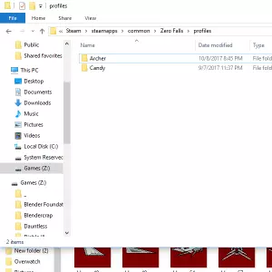 完成后,点击导出按钮。你会进入之前选择灯光和漫反射的同一个文件夹。只需输入你的飞船基础名称,我输入的是“Archer”。游戏随后会生成5个文件:ArcherBot、ArcherBump、ArcherEmit、ArcherSpec和ArcherTop。如果因任何原因弄错了这些文件的名称,可能会导致游戏中出现视觉问题或启动时崩溃。所以如果游戏崩溃,这里是首先要检查的地方。无论如何,将这5个文件放入一个与基础名称相同的文件夹中。我的文件夹当然命名为“Archer”。如果名称不正确,它将无法加载。接下来,将这个文件夹放入你的Steam/steamapps/common/Zero Falls/profiles文件夹中。