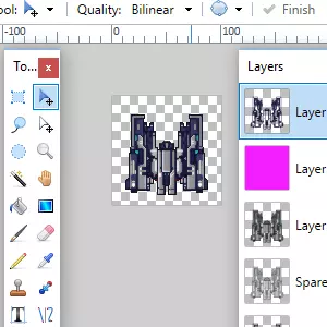 不过在画图软件里进行其他操作之前,我会从我的精灵部件收藏中挑选一个部件,然后用Windows画图打开它。这是因为我发现在画图.net之外旋转部件要快得多。所以我会先这样做,在将任何精灵部件导入画图.net之前,我会在画图软件中对其进行翻转和旋转。话虽如此,画图.net中确实有旋转工具,但它用起来有点笨拙。不过垂直翻转和水平翻转操作很简单,我会在画图.net中进行这些操作。