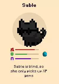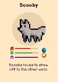 萨布尔 - 双目失明,因此她只拾取经验宝石 史酷比 - 史酷比喜欢在其他宠物面前炫耀