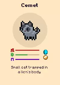 佩佩——一个梗,背后有着深厚的背景故事。 伯爵灰——富有冒险精神,拥有超大拾取范围。 彗星——一只困在狮子身体里的小猫咪。 林波猫——热爱解谜。