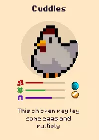 水晶利亚——“这片土地的每一个角落都点缀着闪闪发光的水晶,挤满了渴望披萨的地狱生物!” 在这个世界中,有7只宠物等待拯救,它们分别是: 抱抱——这只鸡可能会下蛋并繁殖 眼眼——这只眼睛看到了光明的一面 甜甜圈——这只狗没有敌人