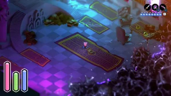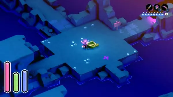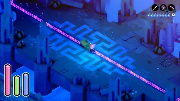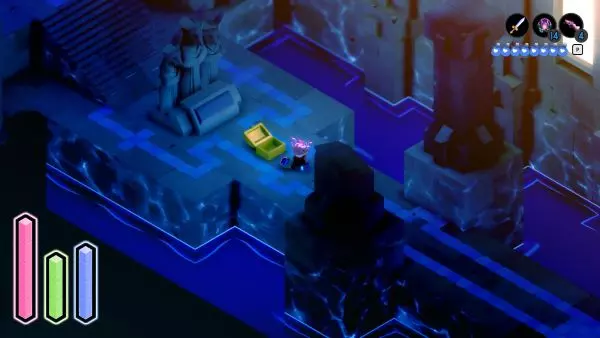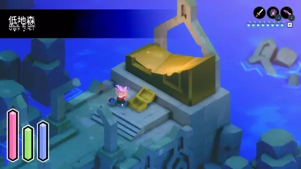 解锁冲刺能力后,返回【破败环礁】。从那里向左走,前往符文被切断且两端有液体溢出的位置。在这两处之间,你会看到一处砖块砌成的边缘,同时在水洼对面还有另一处砖块边缘。冲刺越过水洼,继续前进即可到达此处。 ⚔═尘封宝藏(宝藏 #11)══════════════════════════⚔