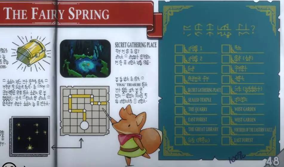 上-左-下-左-上-左-下-左-上-右-上-右-上-左-上-右-下-右-上-左-上-左-上-右-上-左-下-左-上-右-上-上-左-上-右-下-右-下-右-上-右-下-左-下-右-上-右-右-下-右-上-右-下-右-上-右-右-下-左-下-左-下-右-下-右-下-左-左-下-右-下-左-下-右-上-右-下-右-上-右-右-下-下-左-上-右-上-左-下-左-上-左-上-左-上-右-右-上-左-上 第2+3页 位于你醒来的第一个区域。在海滩旁的金色石板上祈祷,你将被传送到【页面】。 【页面】4+5:位于西边黑暗洞穴入口前方。需获得冲刺能力后才能获取。 【页面】6+7:位于森林堡垒起始区域。通过阻挡道路的符文石柱祈祷后,即可在显眼处找到。 【页面】8+9:位于东南海滩区域。获得冲刺能力并从大教堂返回后可见,在符文石柱左侧。 【页面】10+11:位于通往“英雄之墓”的东侧路线上的建筑内。进入建筑所需的钥匙可在西风车附近找到。 【页面】12+13:位于东侧钟楼底部的房间内。它会位于较低楼梯的顶端。 第14+15页:位于东部森林的金色传送板上。可沿着“英雄之墓路线”找到。 第16+17页:位于西部风车下方区域的金色传送板上。 第18+19页:位于西部地下水道入口旁(有梯子向下的黑暗洞口,也在仙女喷泉瀑布前方)。 第20+21页:位于地图顶部锁着的山门前方。 第22+23页:位于东部森林入口旁。入口左侧有一个石头头像,你需要冲刺能力才能传送到雕像口中。从商店老板处获得的页面。 第24+25页:位于密封神殿上层,沿着内部边缘行走即可找到。 第26+27页:位于西部花园的最西边缘。在神龛附近有一条水上狭窄小径,可通向此页面。 第28+29页:位于东部森林入口外。需要用剑砍断树木,在骷髅入口前的湖中小平台中央。 第30+31页:位于地下水道(井下方)通向出口的尽头。击败房间内的守卫后,打开神龛旁的门即可找到。32+33 位于游戏初始苏醒区域的桥下方。若尚未解锁冲刺能力,可走到其左侧瀑布的后方获取。 34+35 位于地下水道(井下方)中,在该区域第一个狐狸神社左侧的房间内。首次进入房间时,它就在你正下方,清晰可见。 36+37 位于前往东部宝库的路线上。在有狐狸向符文柱祈祷的地下房间里,它在狐狸们的上方。进入有狐狸的房间后,直接走到它们上方的阳台上即可找到。 38+39 位于宝石 Boss 前的大图书馆内,是三页中的其中一页。在有圣坛和金色传送台的房间里,你会看到一个玻璃箱,打破它就能获得里面的书页。——第40+41页 位于宝石 Boss 前的大图书馆内的三页书页之一。在有圣坛和金色传送台的房间里,你会看到一个玻璃箱,打破它就能获得里面的书页。 ——第42+43页 位于风车和海滩区域之间的喷泉里。你必须拥有冲刺能力才能获取它。 ——第44+45页 位于第42+43页书页位置的上方,你会看到一扇密封的门。使用方向键描绘门上的纹路,解锁这个房间就能获得里面的书页。 ——第46+47页 位于西花园中,在你获得冰匕首区域的后面。一旦你获得冲刺能力,向狐狸神社附近的符文柱冲刺并为其充能。这将解锁金色传送台,你必须先传送到另一个传送台,才能传送回这个传送台。从这里使用冲刺能力沿着水中的柱子冲刺,绕到岛屿后方即可找到这一页。页码:48+49 位于进入雪山区域之前。在踏上台阶之前,继续向左走,直到找到一块巨大的金色石板,石板旁有2个抓钩点。使用方向键描绘石板上的凹槽,即可生成该页面。页码:50+51 位于宝石 Boss 前的大图书馆内,是馆内3页中的其中一页。在有神社和金色传送台的房间里,你会看到一个玻璃箱,打破它就能获得里面的书页。 第52+53页 位于存放秘密宝藏的房间对面。向左走,绕过瀑布来到中央狐狸神社。进入瀑布另一边的第一个房间,你会看到楼梯底部有一扇门。使用方向键描绘门的内部凹槽来解锁这个房间,书页就在里面。 第54+55页 位于洞穴入口旁瀑布后面的仙女泉房间。必须先解救至少10只仙女,才能从泉水中获得这页书页。查看视频攻略以获取更多信息/资源 可错过的互动 这些互动并非无法回头获取,只是有可能在未获得它们的情况下完成游戏。唯一的例外是Too cute to smash和Bring it to the wrong fight,这两个成就可能会在你的游戏流程中完全错过。 ⚔═Bring it to the wrong fight═══════════════════⚔