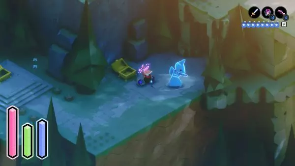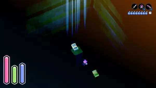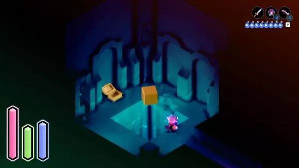 在游戏的第一个区域附近,向西走并向下,你会看到一条通向瀑布的河流。瀑布两侧有螺旋楼梯。在右侧,沿着楼梯向下走一半后,你必须向后方墙壁上有花朵的位置投掷爆炸物来打开通道。进入后,你会看到一个旋转的立方体,用方向键跟随立方体的移动即可解锁。 右-右-右-右-上-上-上-上-右-右-右-上-上-上-右-右-上-上-右-上
