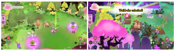 当你开始给植物喂食时,你可能很快就会注意到,不只是一株植物会被激活并开始与你互动。这是因为当你开始喂食其中一株植物时,一定半径范围内的植物都会被激活。这个半径范围的中心是你喂食的第一株植物,所以你可以采取一些策略。 想要激活尽可能少的植物?试着点击植物群边缘的植物。 想要吸引尽可能多的植物?瞄准植物群中间的植物! 植物特殊行动 《魔法书丛林》中的大多数植物都有某种特殊行动。这些行动通常会对玩家产生影响。例如,泥玉米的水坑会使玩家减速。然而,这些行动不仅影响玩家,也会影响其他植物!泥玉米的泥潭也能减缓植物速度并为其提供养分,而哀嚎龙的法术既能让植物入睡,也能让报春花陷入沉睡。作为玩家,你可以利用这一点来获得优势。 部分植物的行动可被打断 《魔法书丛林》中的大多数植物都有自己的行动方式。滚石花可以滚动,哀嚎龙能让周围的玩家和植物陷入沉睡等等。如果你在恰当的时机施放控制植物位置的法术,许多这类行动都可以被打断。例如,当滚石花刚跳起准备滚动时,你对其施放花朵漩涡,就能取消该行动,滚石花也就不会滚动了。 任务 可滚动浏览遗忘清单 在屏幕左侧,你可以按住对应按键(LB/L1/Tab)来打开遗忘清单。遗忘清单会显示你所有的当前任务。但当你接取多个任务后,清单可能会变得稍长。长按遗忘清单按钮,清单将开始自动滚动。解锁新符咒的任务