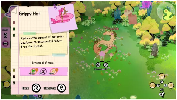 和其他类rogue游戏一样,你无法永久保留所有材料。在开始新一次森林探索前,背包中所有材料都会转化为堆肥(工作台制作的护符除外,它们会保留在背包中)。 不过不用担心,堆肥也很有用!你可以用它和森林里的村民玩坩埚小游戏,或者从自动售货机购买物品。 话虽如此,开始新探索前,一定要把想用于花园升级的材料都用掉——或者故意保留它们,这样下次探索就能获得更多堆肥。选择权在你手中! 使用你的魔法书!