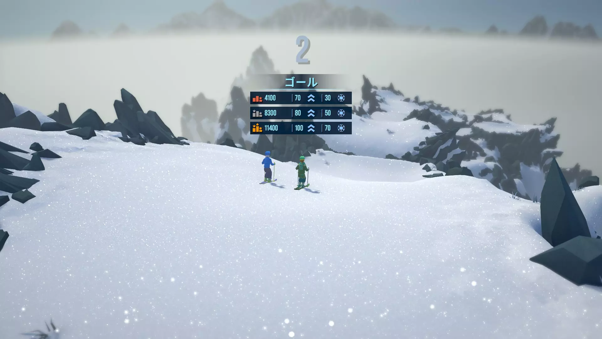 关于成就「伝説のチャンピオン!」的达成方法 首先 《孤山速降:雪地骑手》发售初期共有45个成就,其中与多人游戏相关的成就共有7个。几乎所有成就都可以在游玩过程中逐步达成,但「伝説のチャンピオン!」这一成就由于其多人团队合作的性质,需要同伴的帮助才能完成。本指南将说明即使游戏技术不是很好,只要花一点时间并遇到好的同伴,就能达成该成就的方法。需要具备的能力 作为自身技能,其中一项是能够在倒滑时完成简单的技巧动作。另一个重要的方面是,需要有伙伴陪你一起完成成就。私下和朋友一起玩很简单,但快速匹配会随机匹配到玩家,所以会遇到各种技能水平和游戏风格的人,这是最大的问题。如果某个成就组合看起来很难完成,那就寻找其他目标,尽情享受滑雪的乐趣吧。此外,包括自己在内的2-3人组队游玩时,目标数值会降低,因此成就更容易达成。 成就达成方法: 选择山峰时,基本上哪里都可以,但为了降低难度,建议选择靠近终点且能反复进行合适跳跃的地方。装备选择方面,【猎鹰】更容易完成特技动作,所以建议优先选择。个人推荐【谢拉·盖里达1】的不毛高原。