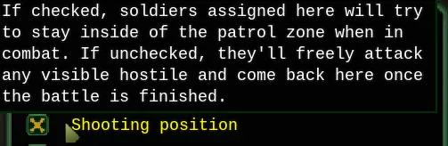 设置说明如下: 【永久驻守】:除了守卫设定区域外,他们不会执行其他工作。如果工人不足,建议禁用此选项。 【射击位置】:远程单位启用,近战区域禁用。 【允许医院治疗】:允许他们接受治疗。 【绝不撤退】:战斗至最后一刻;-) 创建战斗小队