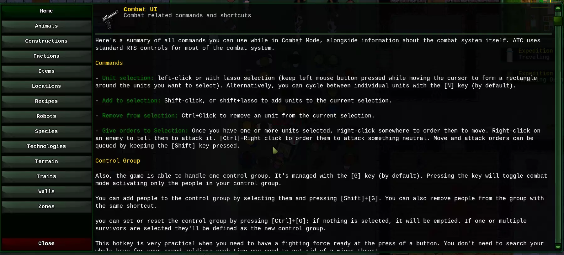 如果你想组建某种快速反应小组来清理建筑或洞穴,只需再次设置巡逻区域并分配你想要使用的定居者。一旦他们集合完毕,只需用鼠标框选所有人并点击【征召军事人员】,这将让被选中的定居者进入战斗状态,而其他所有人将继续工作。 控制组(战斗小队2)