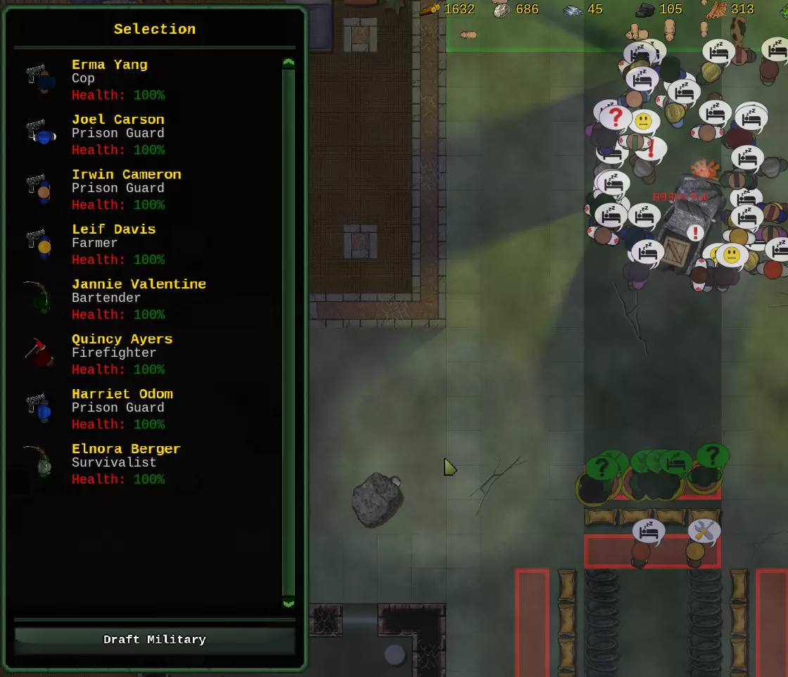 这是一份非常简化的战斗指南,旨在向新玩家展示游戏的部分特色。 选择你的士兵: 军事技能被禁用(显示为红色)的定居者在进入战斗模式时不会被征召,他们会继续工作(但除非已设置紧急避难区,否则这会使他们面临遭遇敌人的危险)。 遗憾的是,每次在工作管理器中进行任何操作时,技能都会重置,因此最好先设置军事技能。