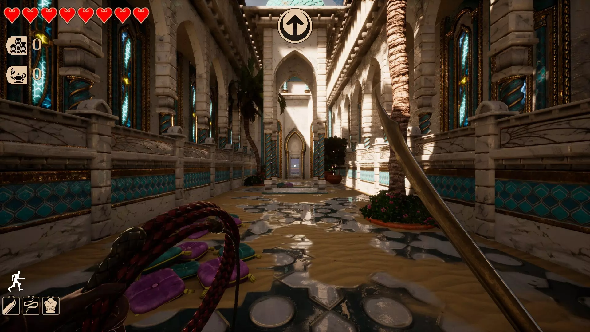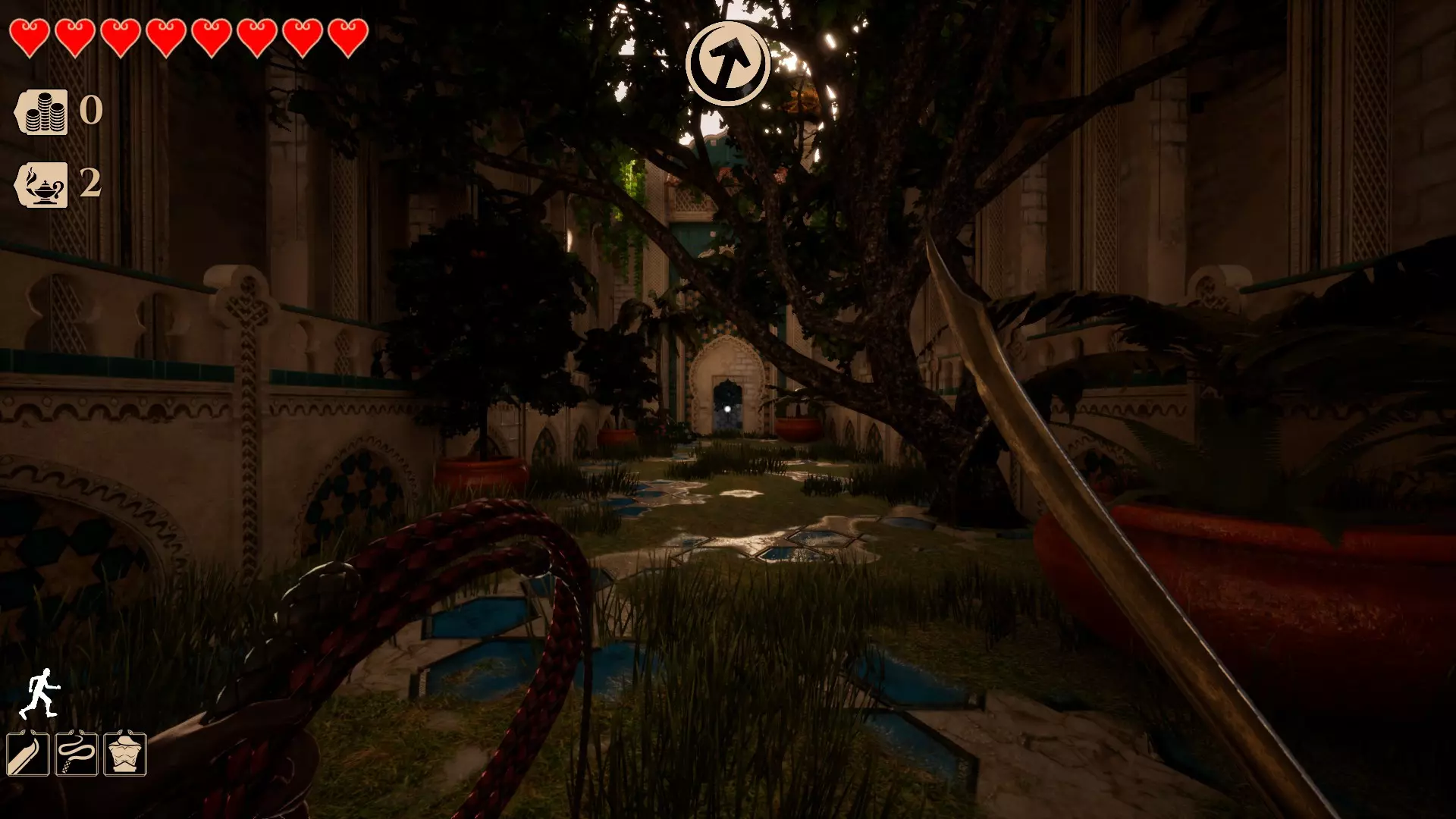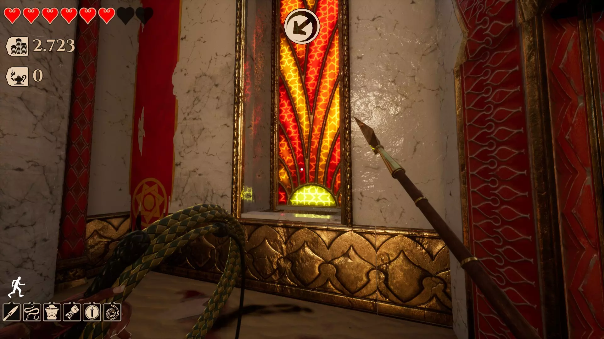 这是第四个区域,名为【宫殿庭院】。目前该区域有两种类型的秘密。 此区域的秘密通常如下: 墙壁洞口后方有一个隐藏房间。你需要蹲下或滑行才能进入,只需按下【C】键。