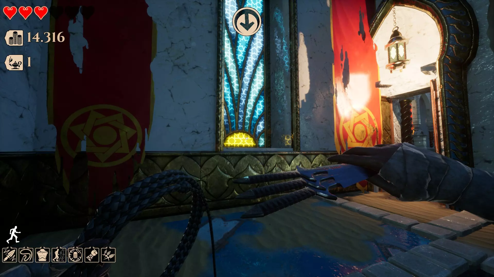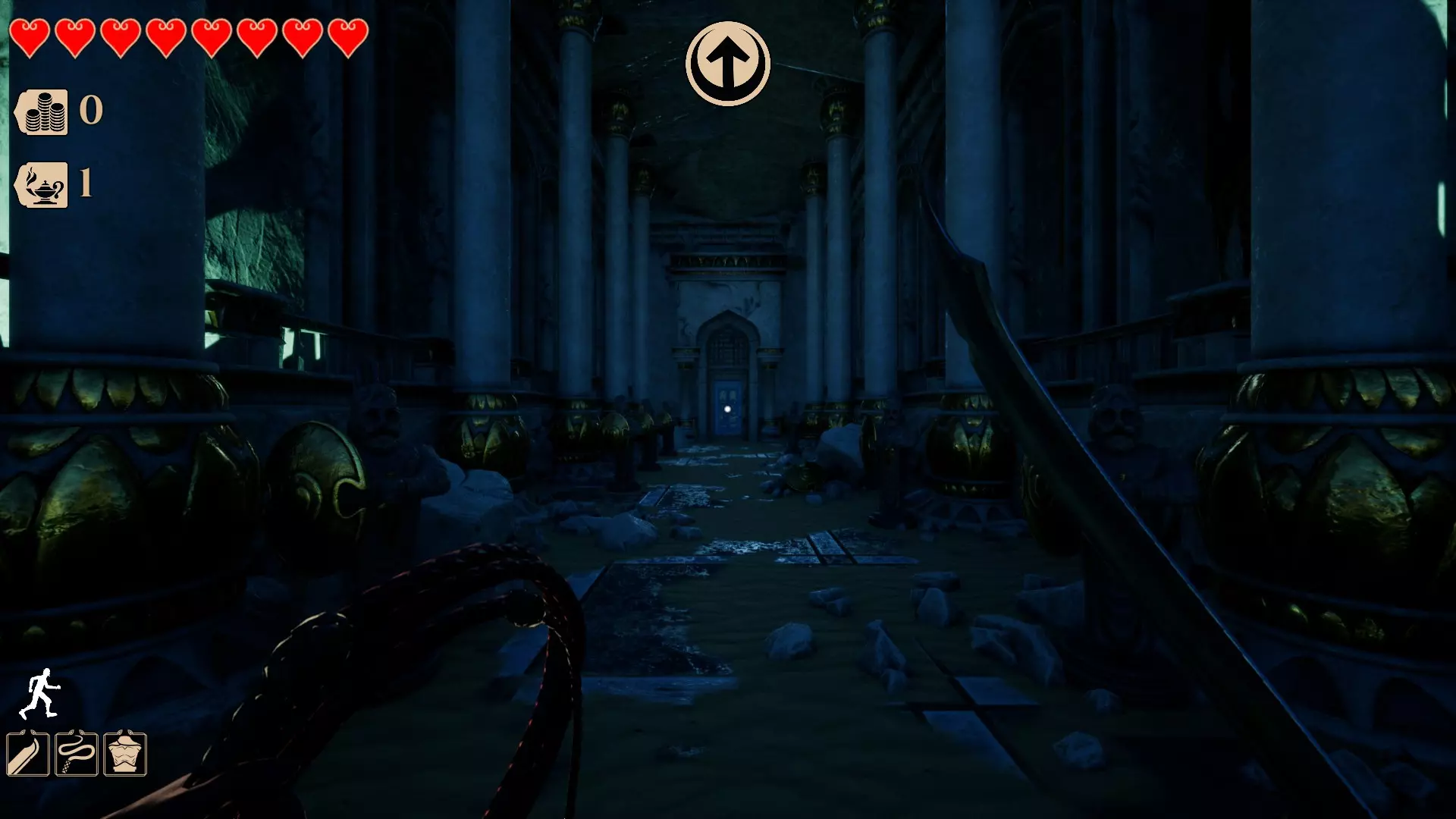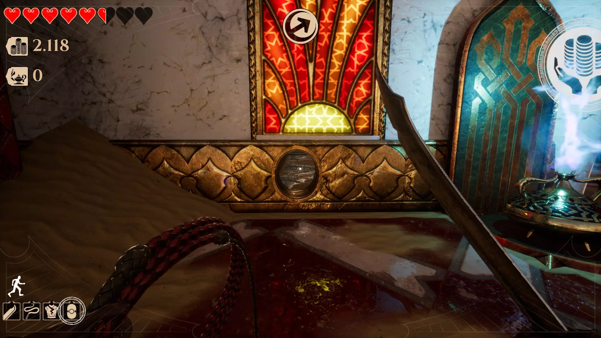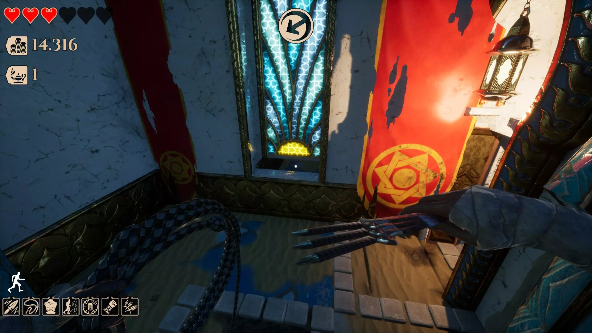 这是第四个区域,名为【宫殿庭院】。目前该区域有两种类型的秘密。 此区域的秘密通常如下: 墙壁洞口后方有一个隐藏房间。你需要蹲下或滑行才能进入,只需按下【C】键。