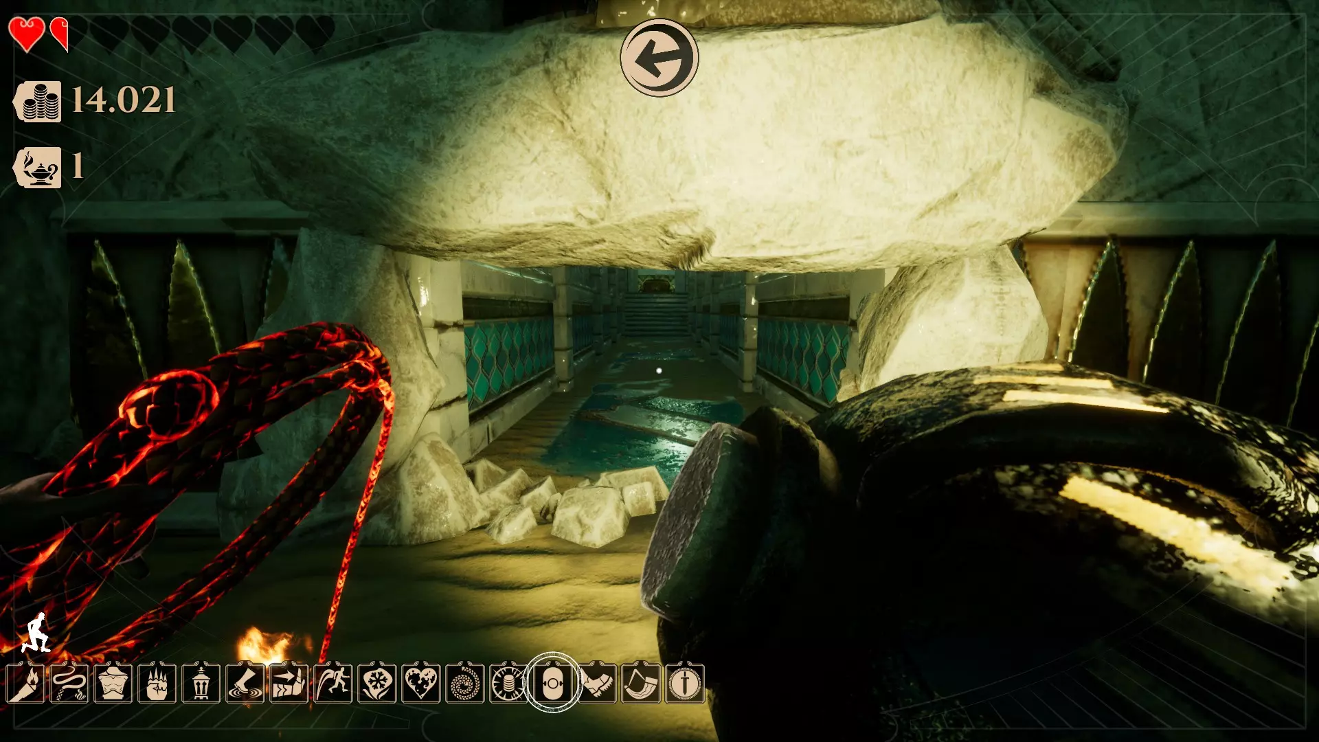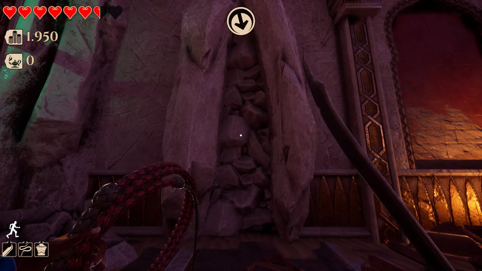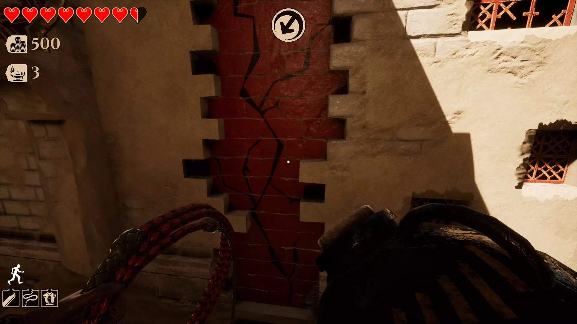 另一种类型的秘密是这种红色墙壁。你需要一个爆炸 urn 才能进入。你可以在截图中看到这个 urn。遗憾的是,你无法用燃烧的灯笼进入,所以确实需要爆炸 urn 才能进入(这也是进入需要特定物品的秘密房间的唯一入口)。