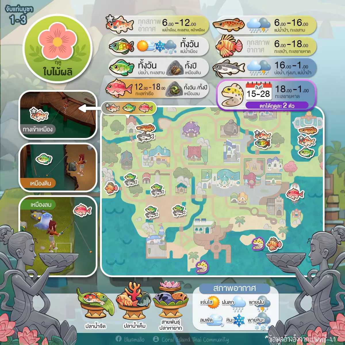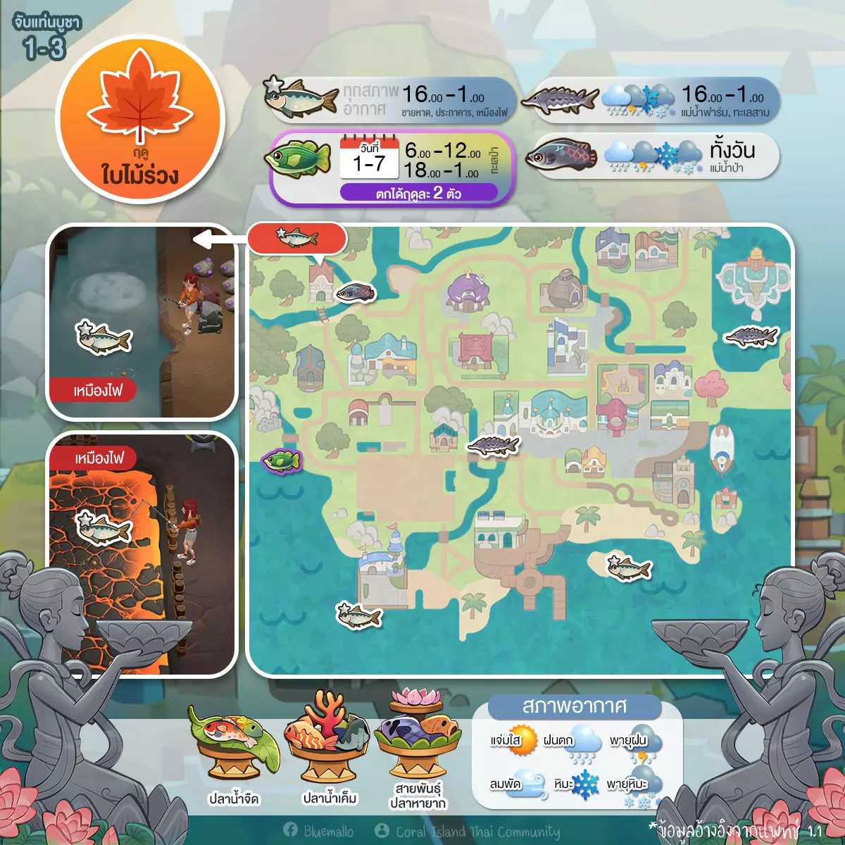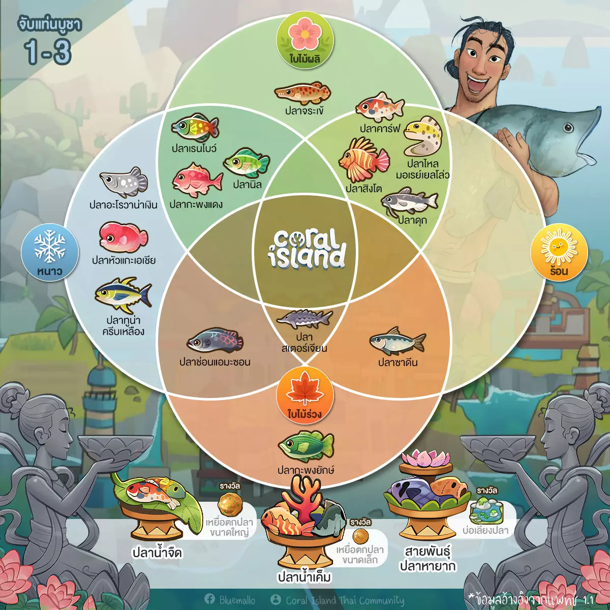 第二排第二类,捕捉神龛(Catch Alter) 同样有6个小平台 从鱼类开始,我们按季节来划分吧 看看哪个季节应该去捕捉哪种鱼