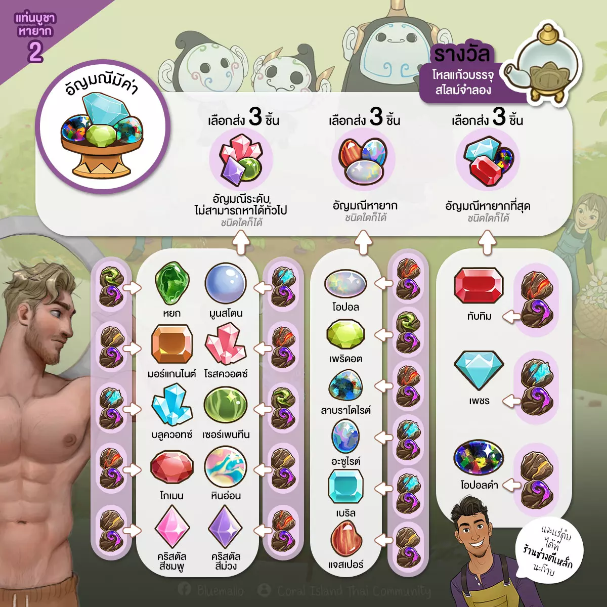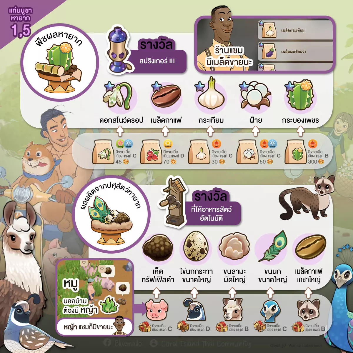 • 稀有祭坛 1. 稀有作物 2. 珍贵宝石 3. 稀有料理 4. 难以招募的工匠 5. 稀有牲畜的产物 6. 稀有资源