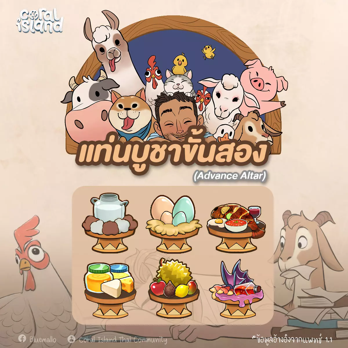 二级祭坛(Advance Altar)分为6个子类别: 1. 畜棚饲养的动物 2. 鸡舍饲养的禽类 3. 基础烹饪 4. 基础手工制品 5. 水果作物 6. 怪物掉落物