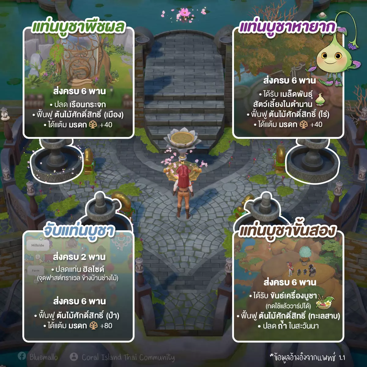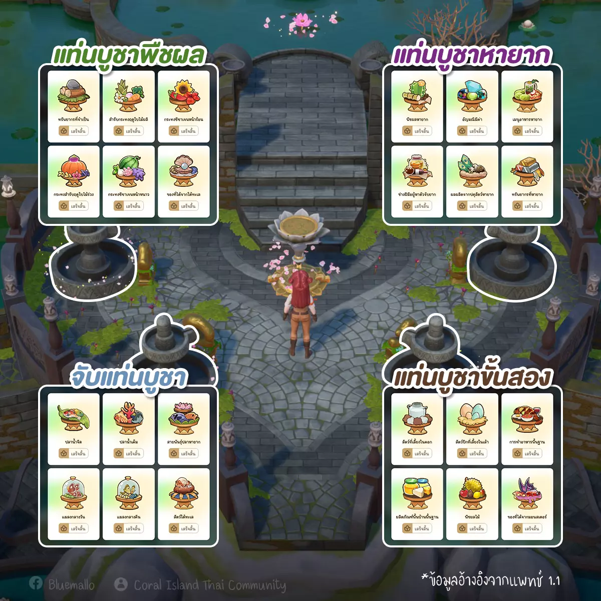 这款游戏共有4类祭坛: • 作物祭坛(Crop Altar) • 捕获祭坛(Catch Alter) • 进阶祭坛(Advance Altar) • 稀有祭坛(Rare Altar) 每个祭坛下还有6个子类别,总计24个祭坛。