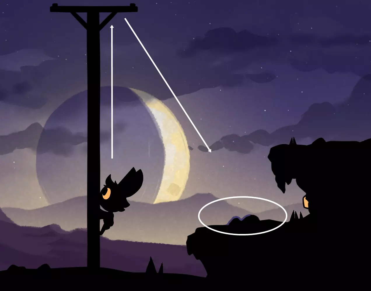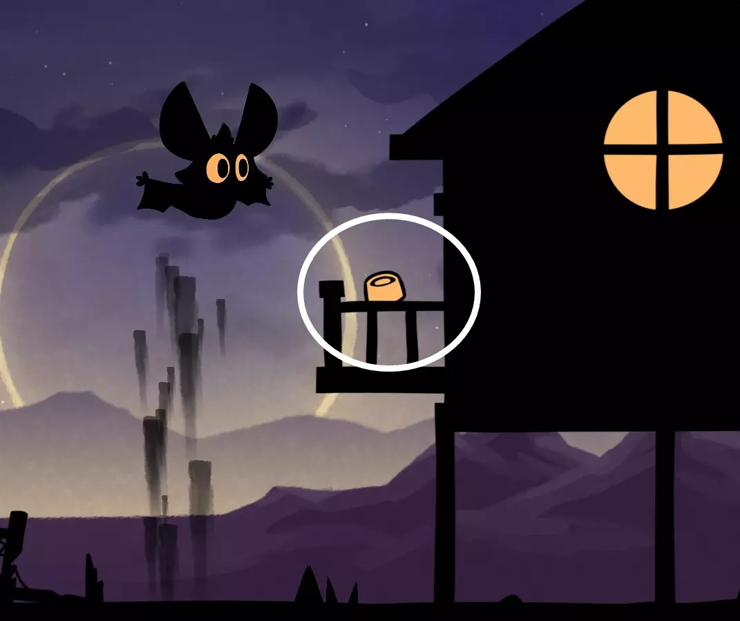 有个名叫丽塔的有趣女士,藏在月亮派后面的阴影里,你得一直走到屏幕的右边。