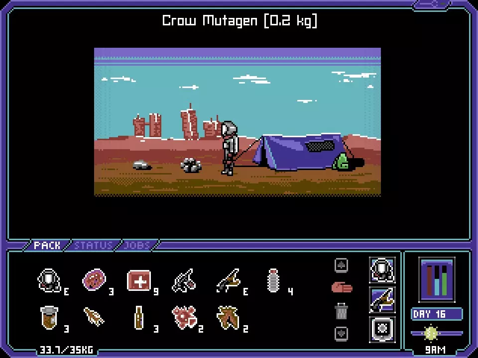 相信我,这迟早会派上用场。 你生命中的战斗 该怎么说呢。在《Dustbowl》里,有一场战斗如果你没做好准备,会让你吃尽苦头。我不会透露太多,因为这场战斗的铺垫和相关情节都非常有趣……但当那一刻来临时,这里有几个小提示或许能帮到你。 为【BAMF】准备好【BFG】——游戏里有一些特殊类型的武器,留一把并在游戏后期使用。 在一个战斗回合中,你可以同时修理护甲和使用物品——这一点至关重要。记住,护甲是你的第一道防线,敌人必须先打光你的护甲,才能伤到你那被辐射的脆弱身体。在游戏后期,你应该调整背包,专注于战斗、医疗和消耗品(还有护甲修理,这点无需多提吧?)。此时应舍弃 salvage 和 crafting 相关的物品。正如我之前所说,你会知道什么时候该这么做。 总结 《Dustbowl》是一款后末日题材游戏,它显然在2015年被埋没了。这很可惜,因为它是一款“复古风”的冒险游戏佳作,充分发挥了其所用的 Adventure Game Studio 引擎的全部功能。我很享受游玩《Dustbowl》的时光,尽管我觉得游戏还有很多潜在内容未被挖掘。特别是,有许多有趣的地点完全无法互动——这很遗憾,因为四处探索本是《Dustbowl》的一大乐趣。不过遗憾的是,许多场景的“角色”或场景布置做得相当不错,而且很少重复。 这款游戏或许没有达到它本可以达到的宏大程度,但现有的内容确实有趣(尽管偶尔有些重复)、引人入胜(尽管有些欠开发)且意味深长(尽管有些简短)。这算是在委婉地批评吗?我并非有意如此。对于一个小团队制作的游戏而言,我认为他们的成果已经相当出色了。游戏充满了潜力,这也充分说明了开发者的能力。 我是否有兴趣看看这些开发者还会创作什么?当然。 我会购买他们开发的下一个项目吗?是的,我会的。