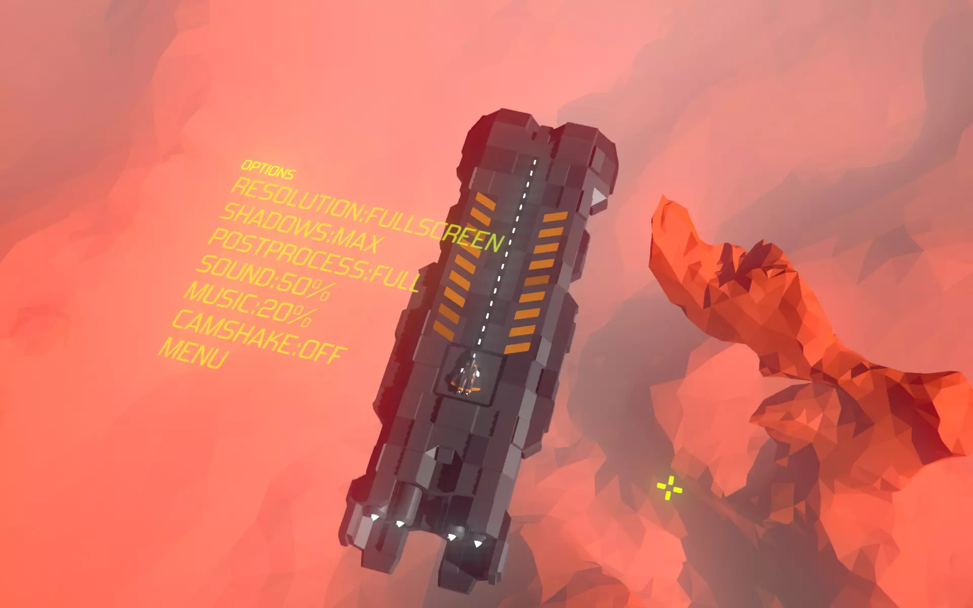 这就是你让母舰无人看守的后果。 指南于2017年6月进行了编辑,以跟上最近的游戏更新。 界面、选项和设置 界面极其简洁。就像图形一样,这款游戏甚至应该能在低端英特尔集成显卡上运行,比如英特尔HD 3000系列……任何高于此的显卡或具备DirectX 9功能的独立显卡都能轻松以全细节运行这款游戏。 你可以通过按ESC键或游戏手柄上的“返回”键来选择一些选项,例如图形选项(阴影关闭/中等/高),以及是否要使用默认的镜头抖动效果、半强度抖动效果或完全关闭抖动。