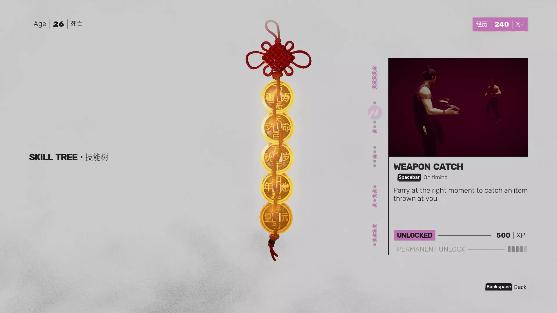 将他的结构值击破两次并饶他一命,即可进入最终阶段。 击破杨的结构值(第三/最终阶段): 你还需要与杨进行最后一个阶段的战斗。此阶段要求你击破杨的结构值,同时他也会尝试击破你的结构值。你的生命值条会消失,且无法通过衰老和重试来恢复。只需格挡、闪避并弹反他,最后一次击破他的结构值,即可解锁武德的最终道路。