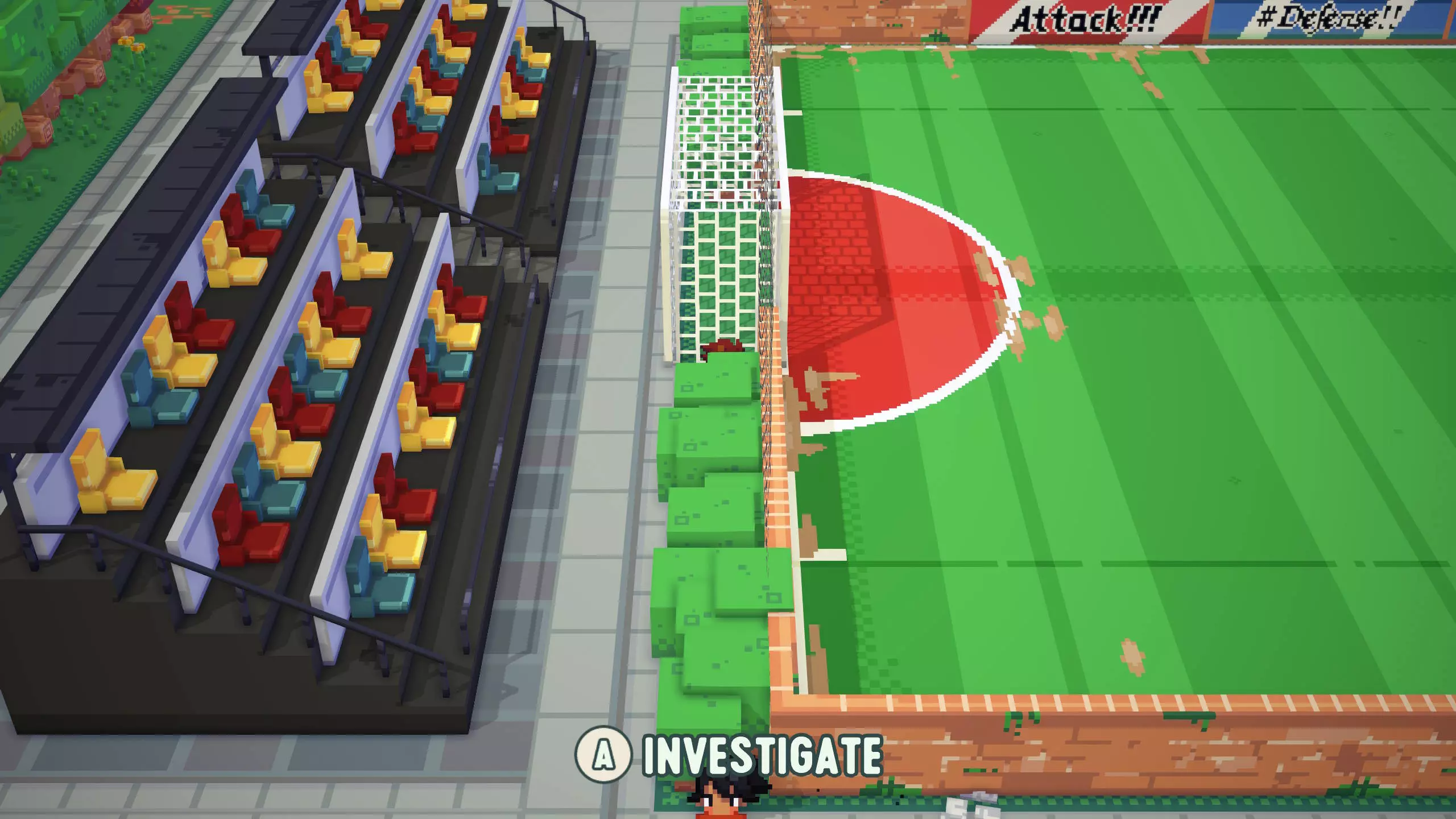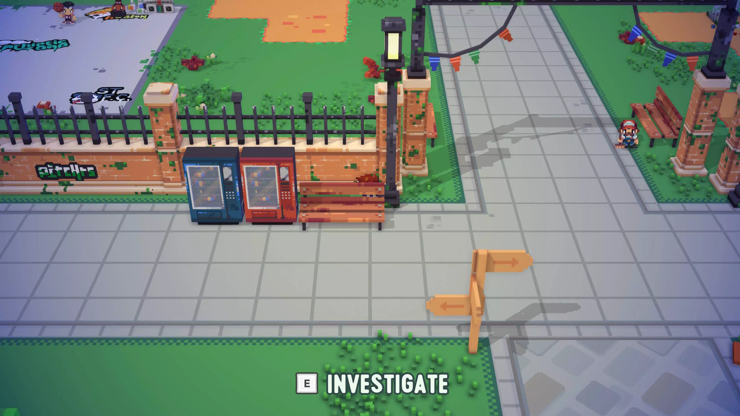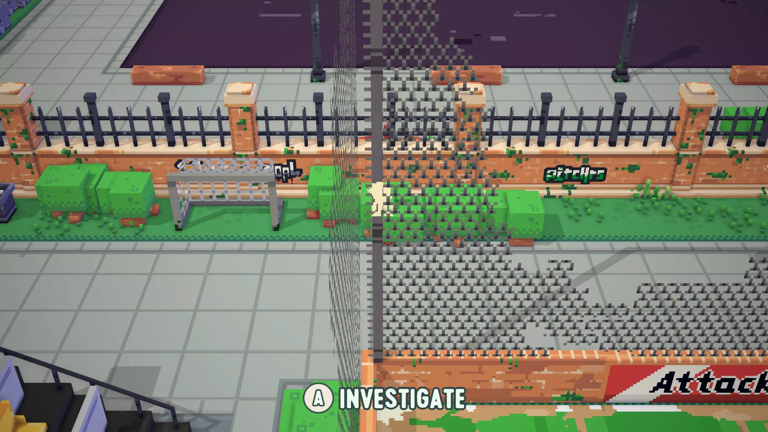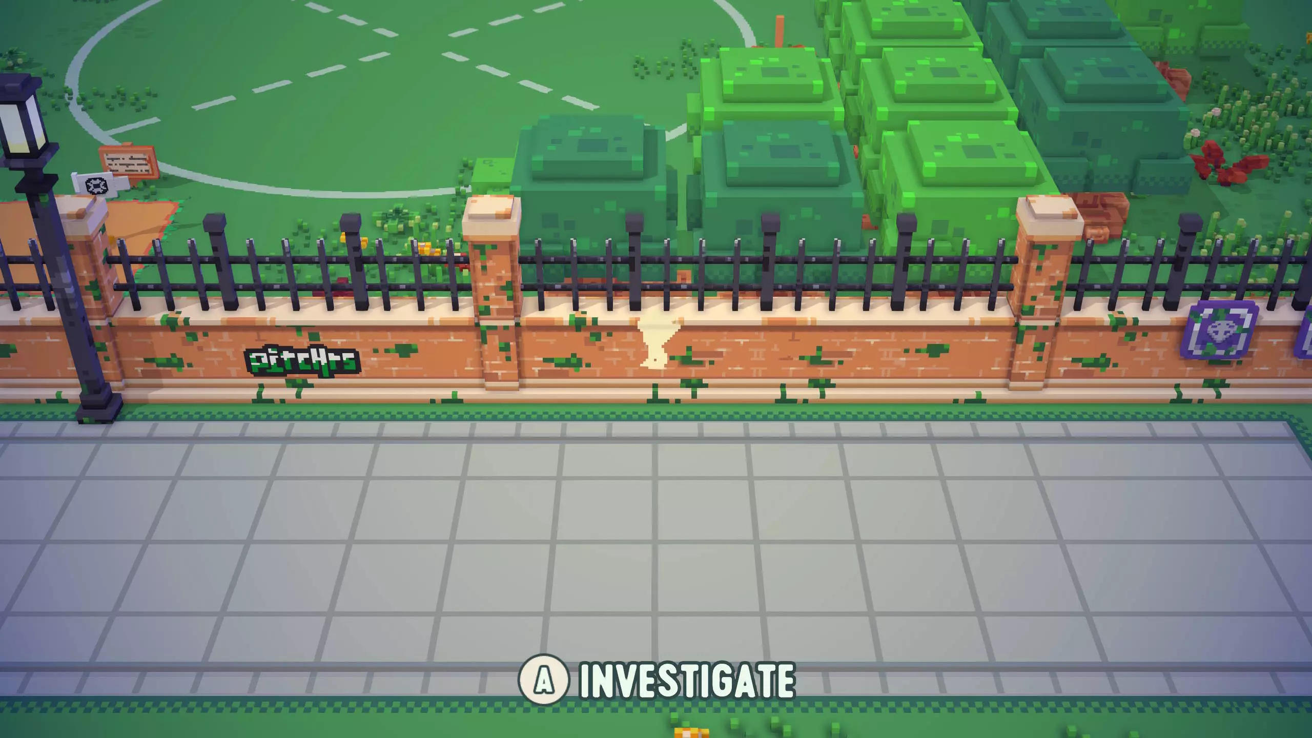 票根8 靠近票根7。在足球镇西南角,篮球场上方,树木附近的地面上有标记,旁边还有一根灯柱。 将球踢向灯柱。这会使截图左侧所示的木制树桩消失,解锁一个隐藏区域。 然后,穿过打开的区域即可找到票根。