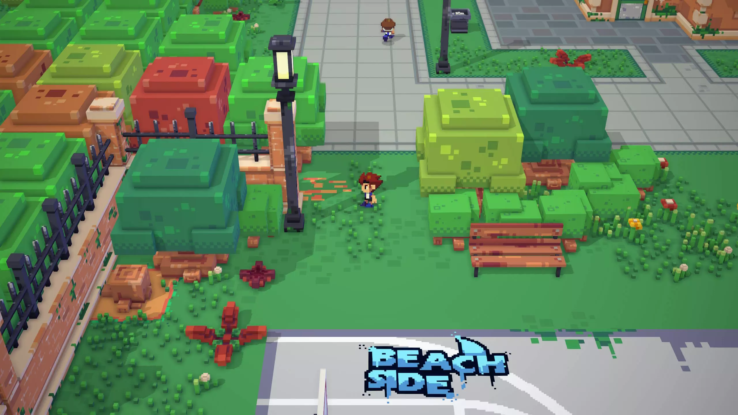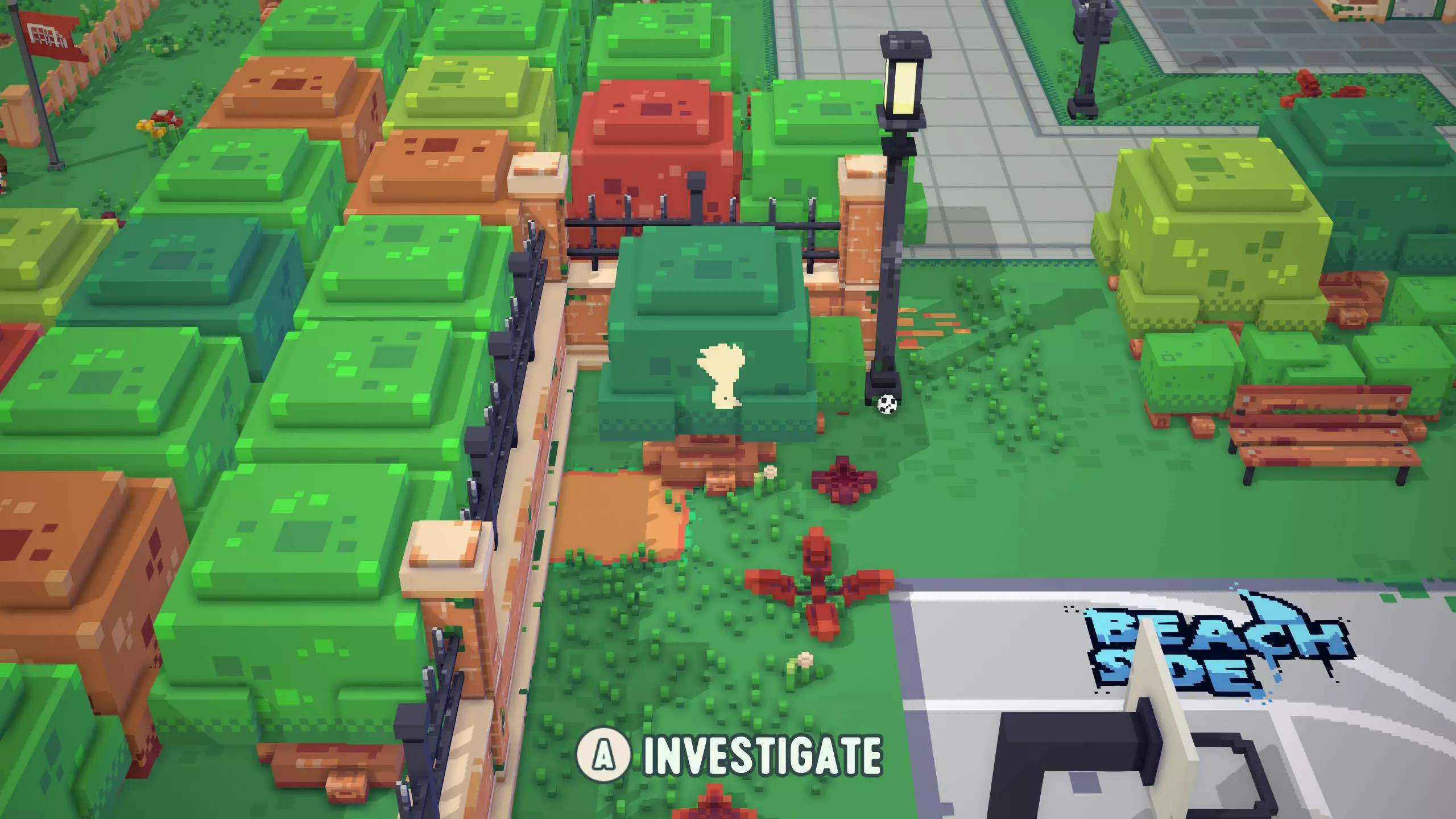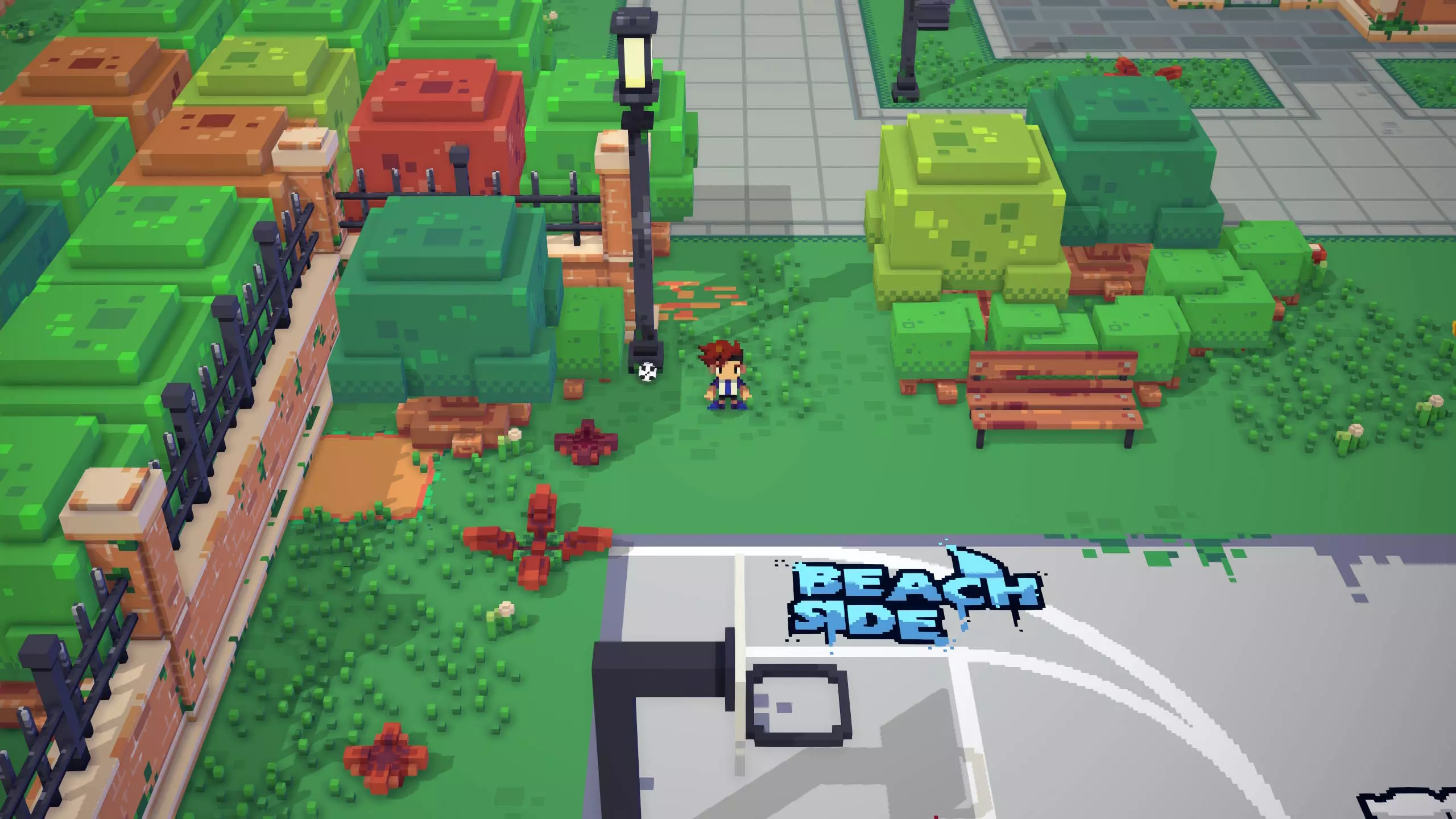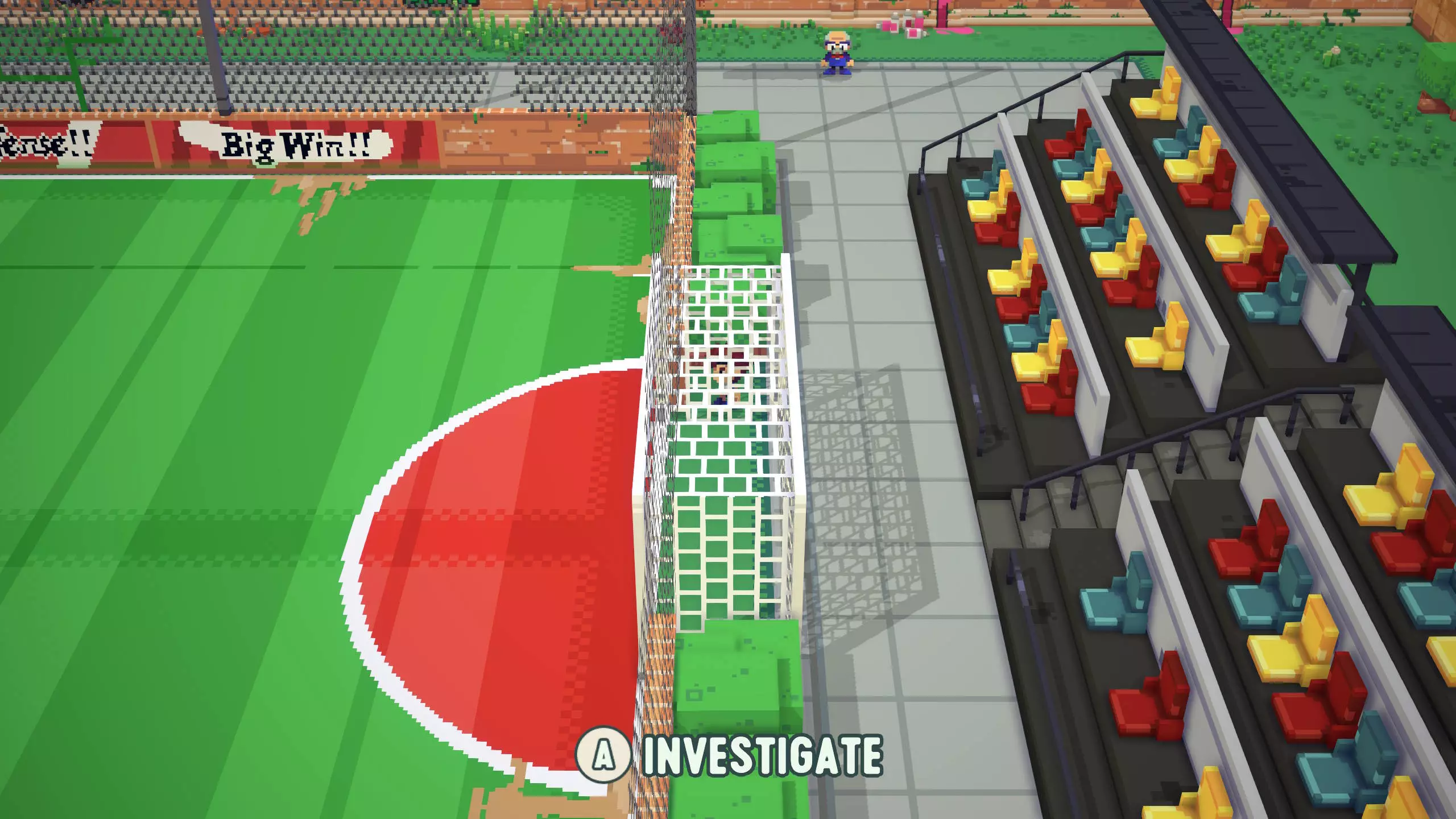 票根8 靠近票根7。在足球镇西南角,篮球场上方,树木附近的地面上有标记,旁边还有一根灯柱。 将球踢向灯柱。这会使截图左侧所示的木制树桩消失,解锁一个隐藏区域。 然后,穿过打开的区域即可找到票根。
