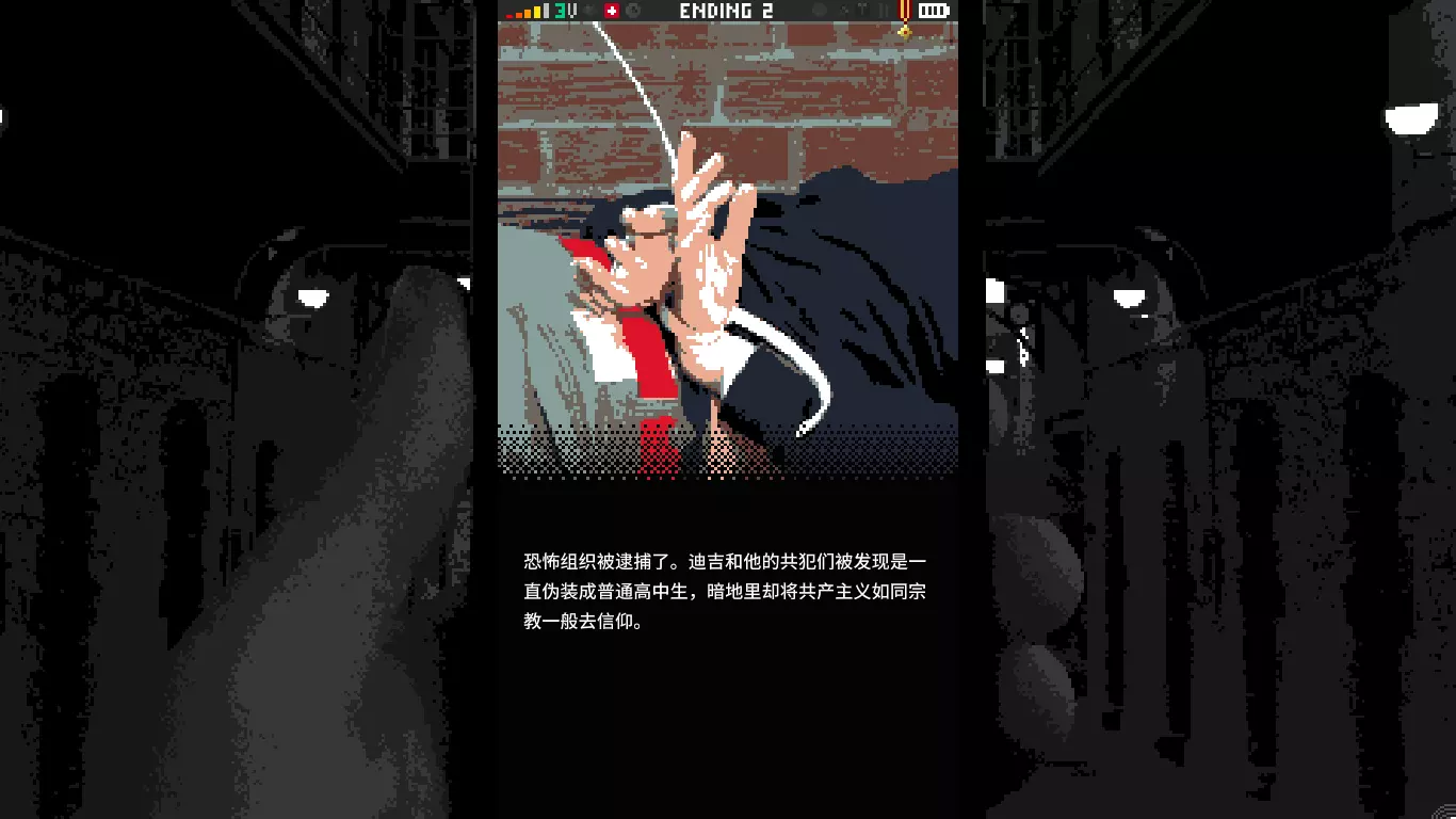 最终在多次供述下,我相信“我是反政府的恐怖分子,也是对国家和公众安全的威胁。” 引用自贝尼托·墨索里尼:国家即是一切, 国家拥有一切, 一切为了国家。 结局1