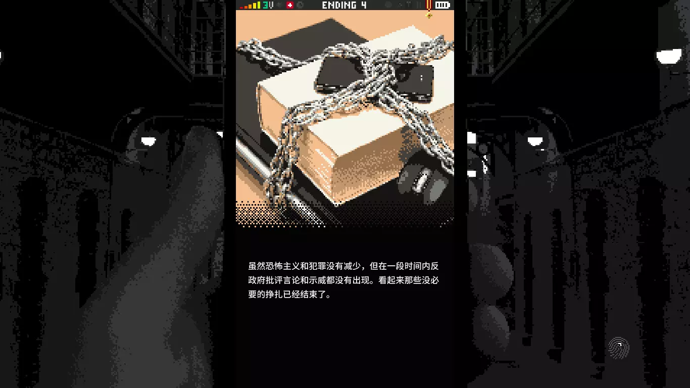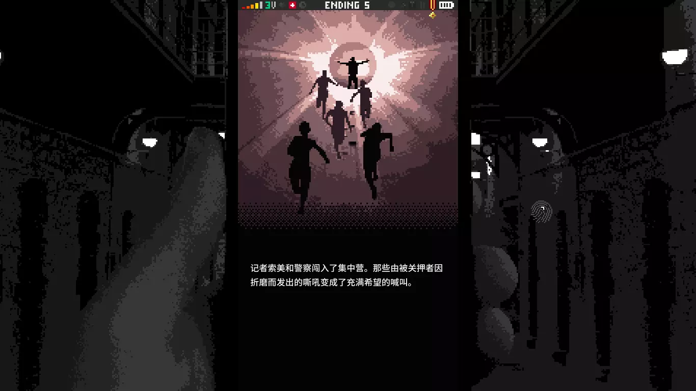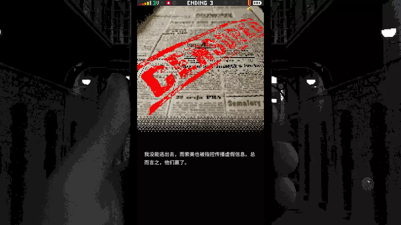 我没能逃出去,而记者索美也被指控传播虚假信息。总而言之,他们赢了。 引用自 贝尼托·墨索里尼:国家即是一切, 国家拥有一切, 一切为了国家。 结局4