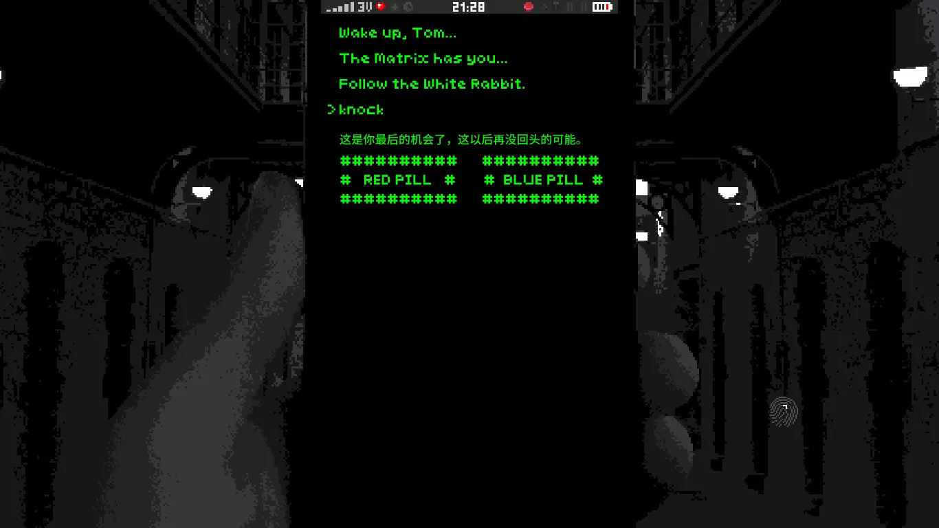这里致敬了《黑客帝国》,母体(Matrix)、小白兔、红蓝药丸,都来自这部电影。 结局10