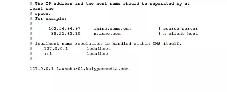 在最后一行下方添加这一行“127.0.0.1 launcher01.kalypsomedia.com”