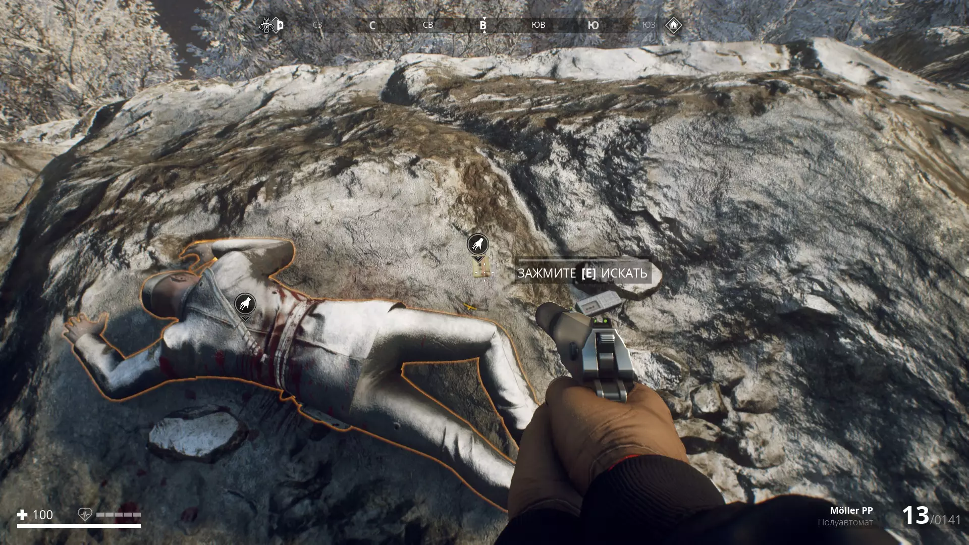 从入口的远端出去,然后按照左、右、左、左的方向走。你应该能找到这个不幸的家伙。