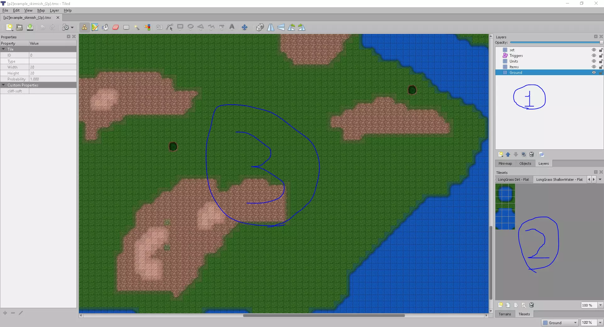 你可以通过打开Tiled地图编辑器来打开该文件,点击文件->打开,在本示例中我将打开[p2]example_skirmish_(2p).tmx。