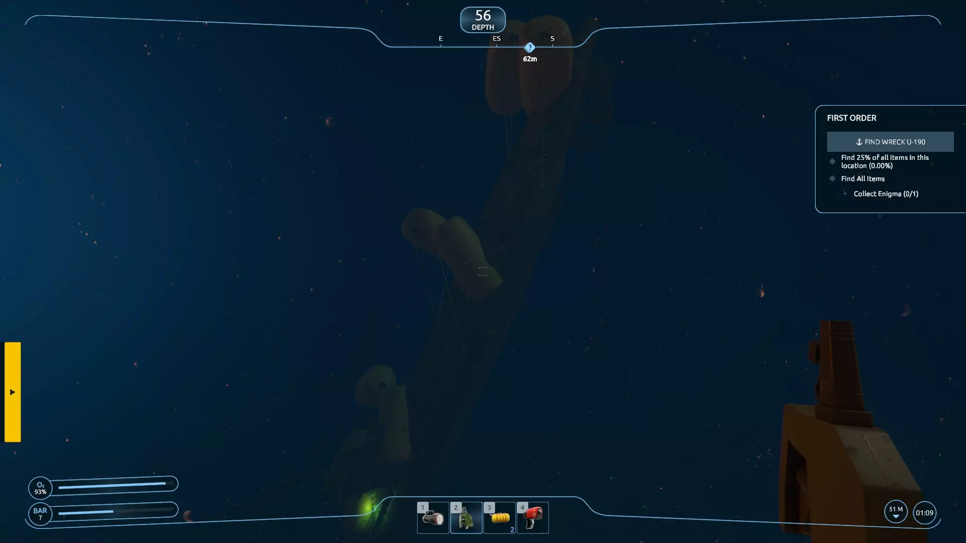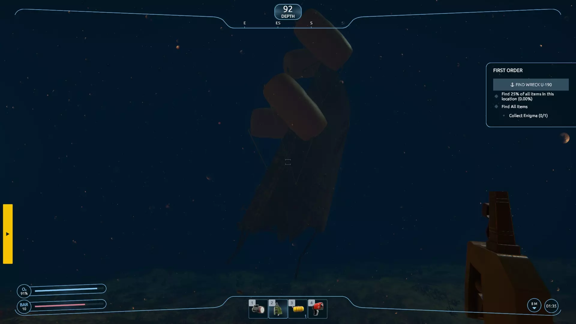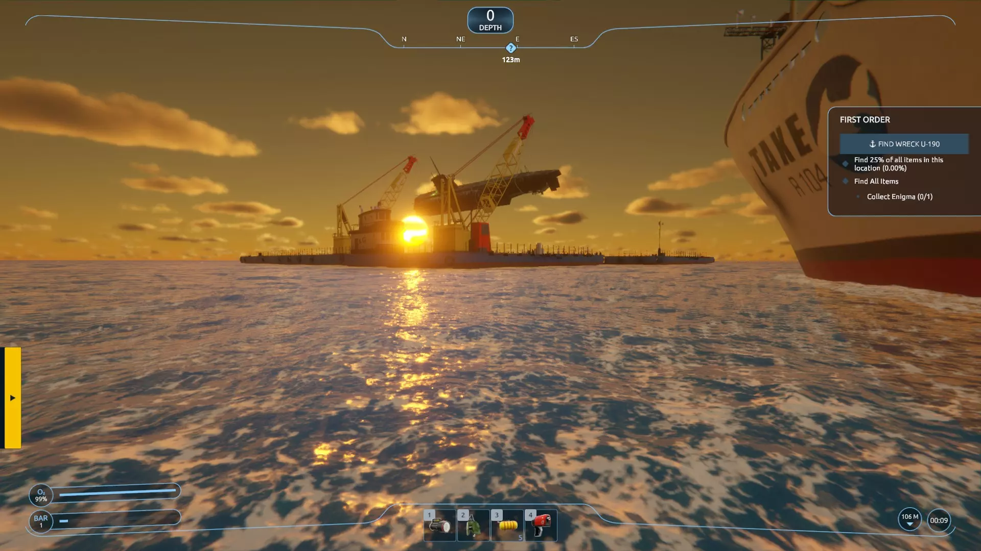 更新说明 免责声明:游戏目前仍存在不少问题,但相比之前有所改善。我依然热爱这个游戏的设定,非常希望它能成功运行,也期待开发者能继续修复它。所以,在此期间,我认为每个人至少应该能成功打捞一艘沉船…… 简介 正如指南描述中所说,我认为这款游戏存在问题(尽管在补丁更新后有所好转,但在更多修复工作完成前,我坚持这一观点)。这实在是太可惜了。据我所知,这个游戏的创意在众多游戏中极具酷炫感和独特性。到目前为止,我已经体验并卸载了 demo,安装、卸载又重新安装了正式版游戏,还多次重启“新游戏”来尝试消除 bug,但对我来说这些都没什么效果。我已经不太会对新游戏感到兴奋了,所以真的希望他们能修复这款游戏。(更新:补丁发布后情况有所好转,但问题仍未完全解决) 在此期间,经过多次尝试和摸索,我浏览了一些讨论内容,发现或许只有第一关每次都能正常运行。在后续的一些随机任务中,我遇到了各种奇怪的生成问题(例如水下漂浮的残骸、无法收集的闪烁物品,导致任务无法完成等),于是回到第一关验证这些说法是否属实——结果确实如此:我终于成功打捞起一艘沉船。希望你也能成功! 看出来我刚才的梗了吗?因为这是一艘U艇……当我没说。
